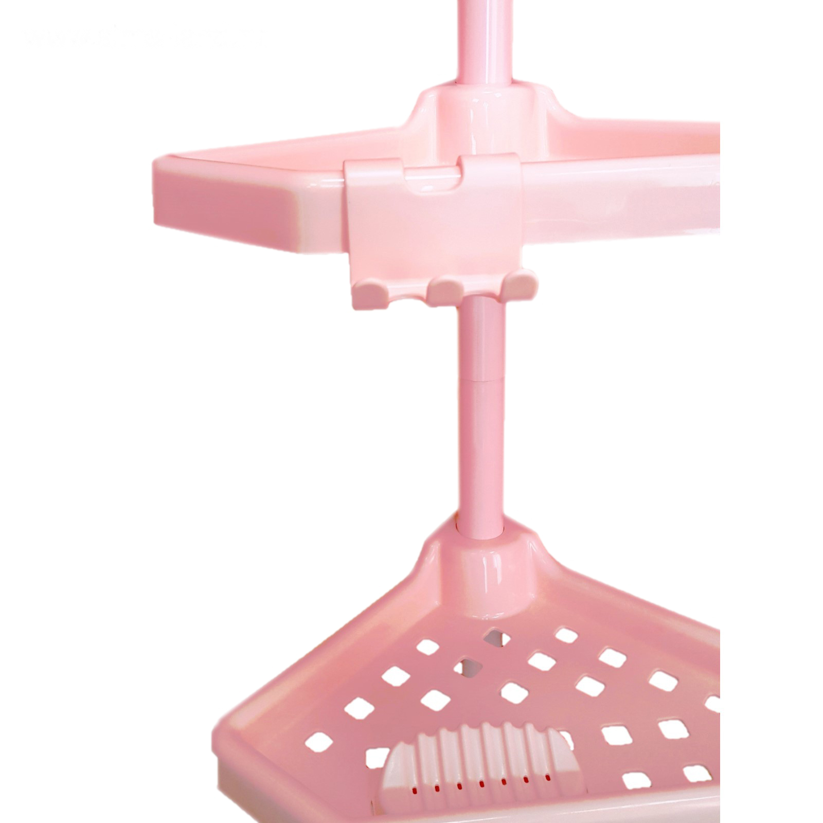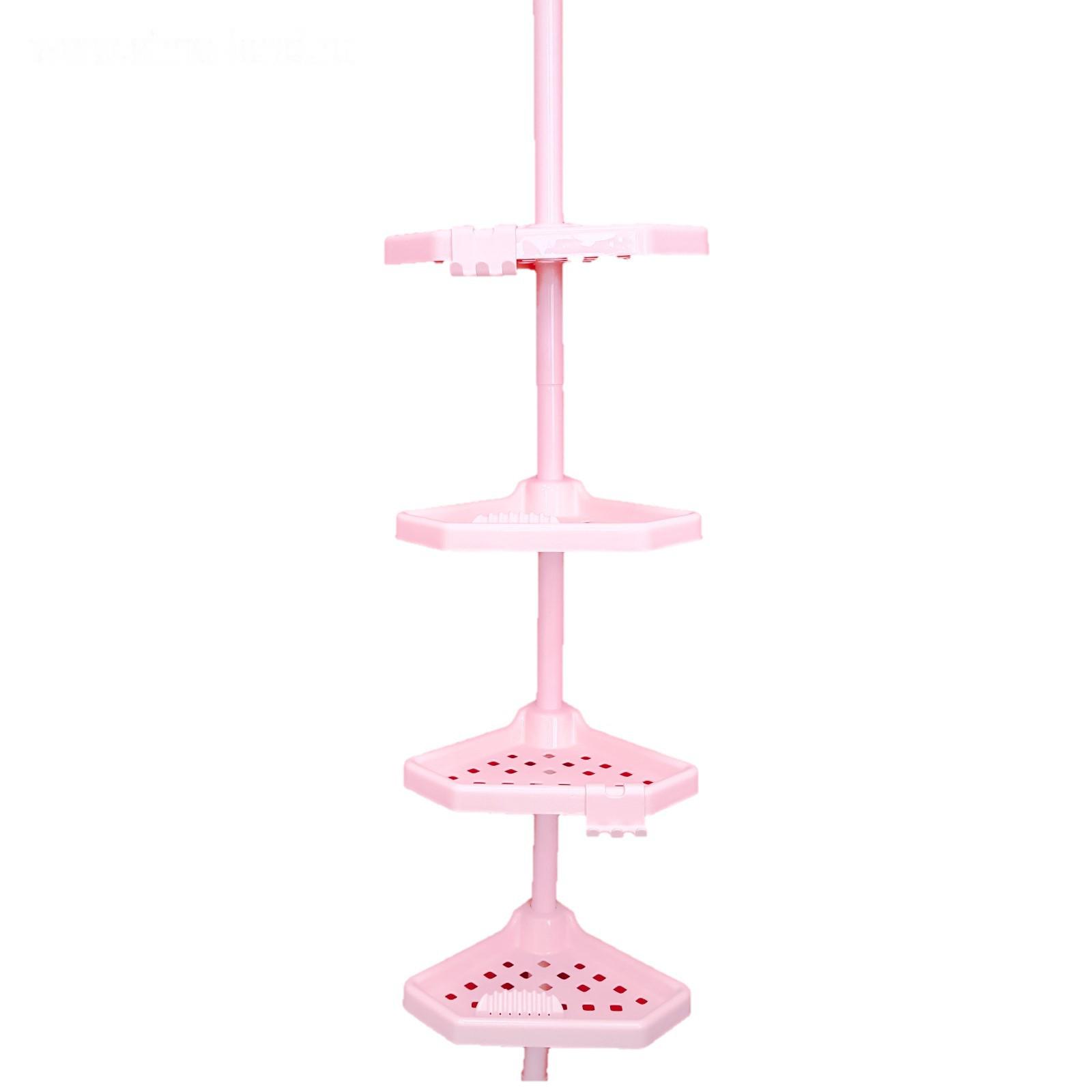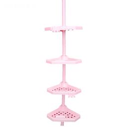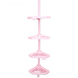 Угловая полка, телескопическая пластиковая трубка, размер 135-260 см, 4 полки, 2 крючка, цвет розовый
