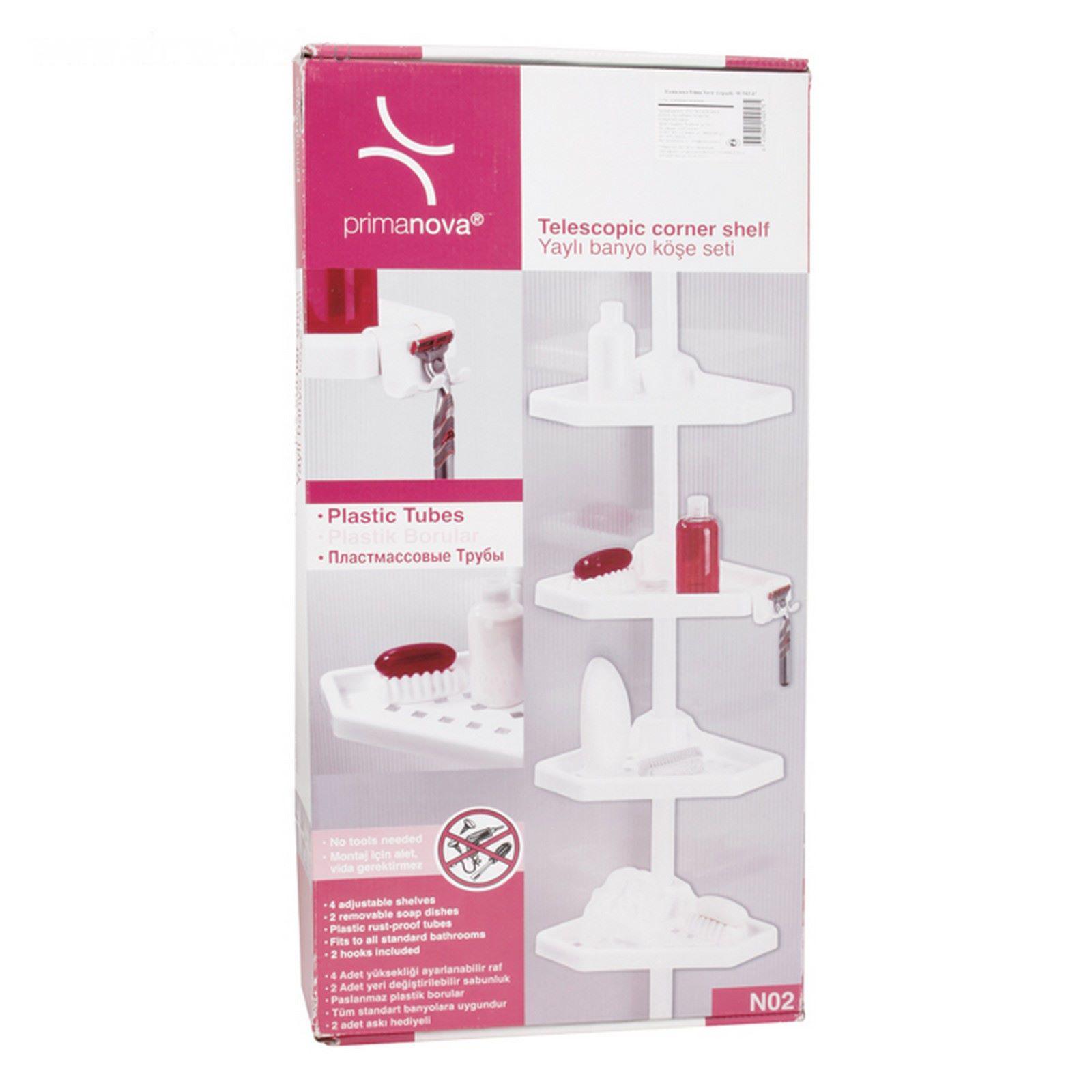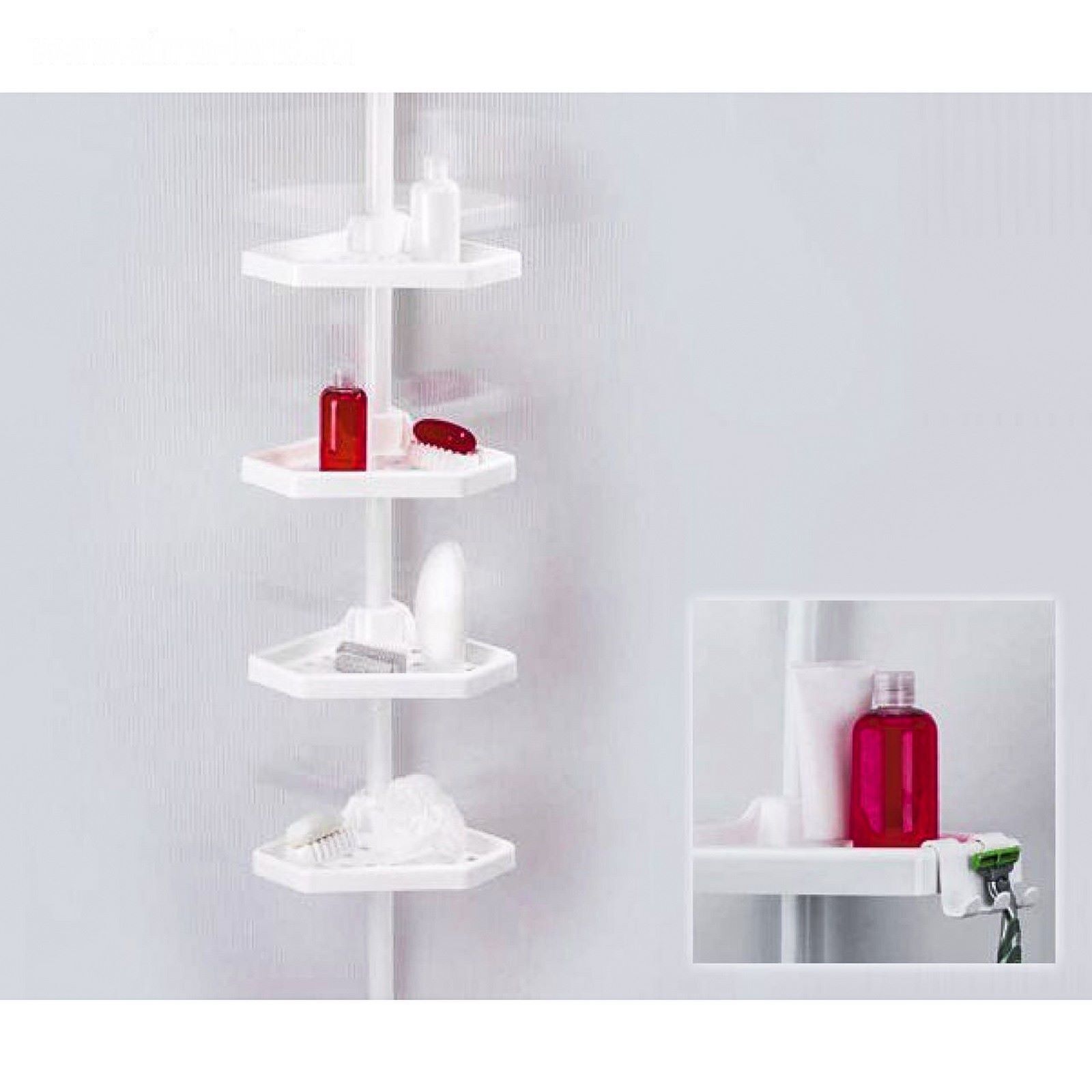 Угловая полка, телескопическая пластиковая трубка, 4 полки, 2 крючка