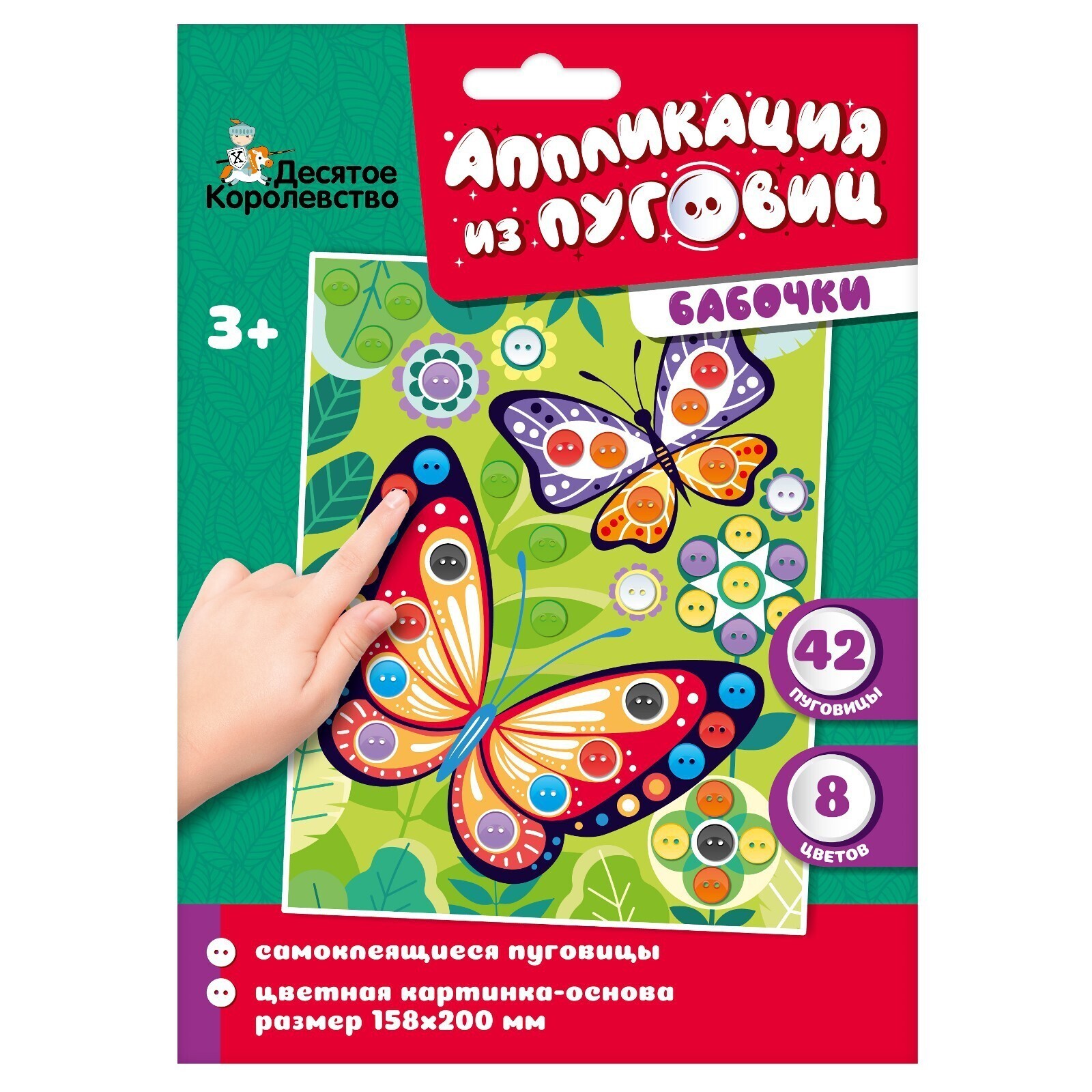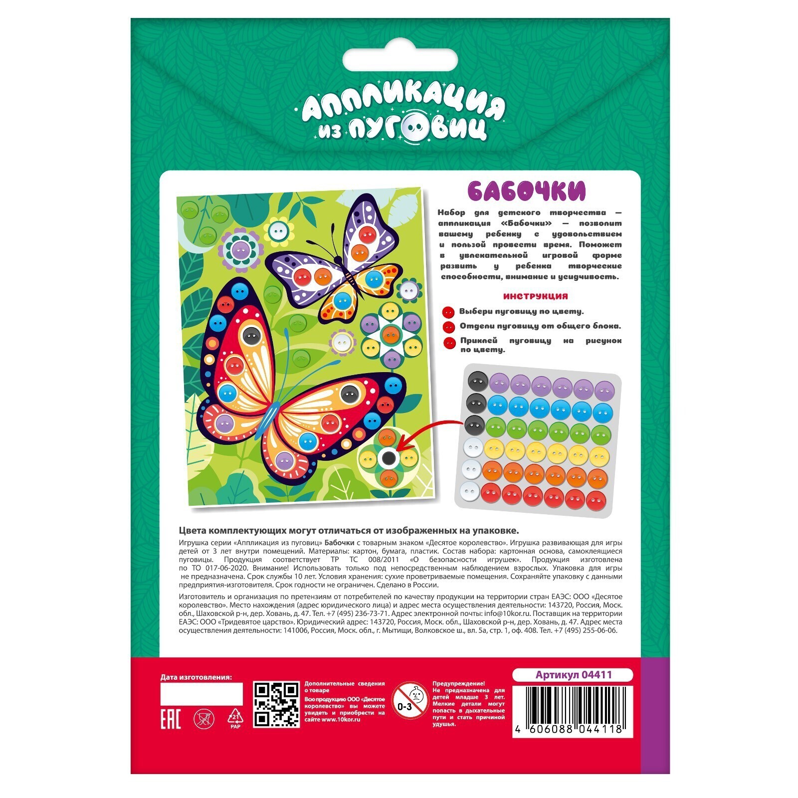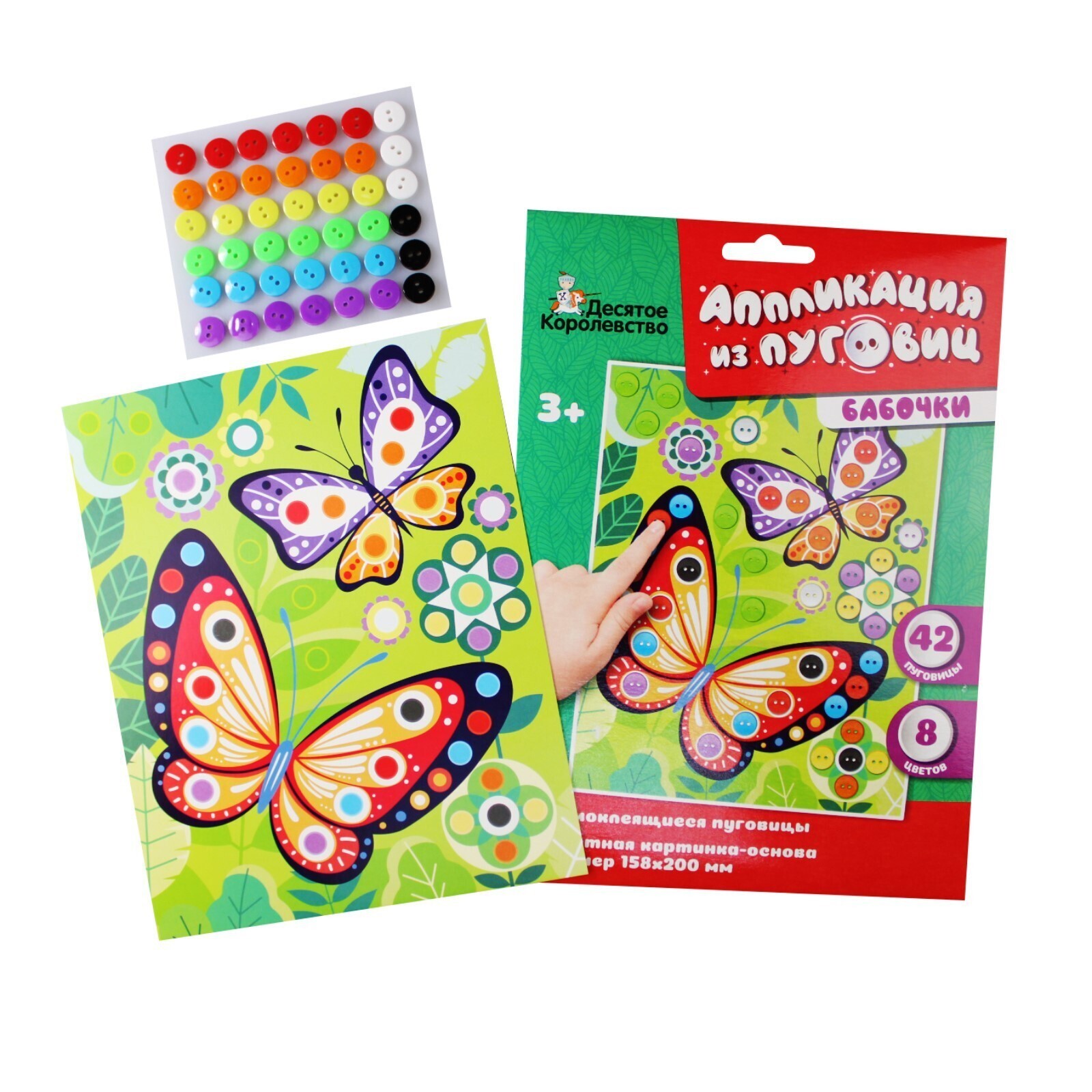 Набор для детского творчества аппликация из пуговиц «Бабочки» обязательно увлечет малыша яркими цветами и оригинальным исполнением!