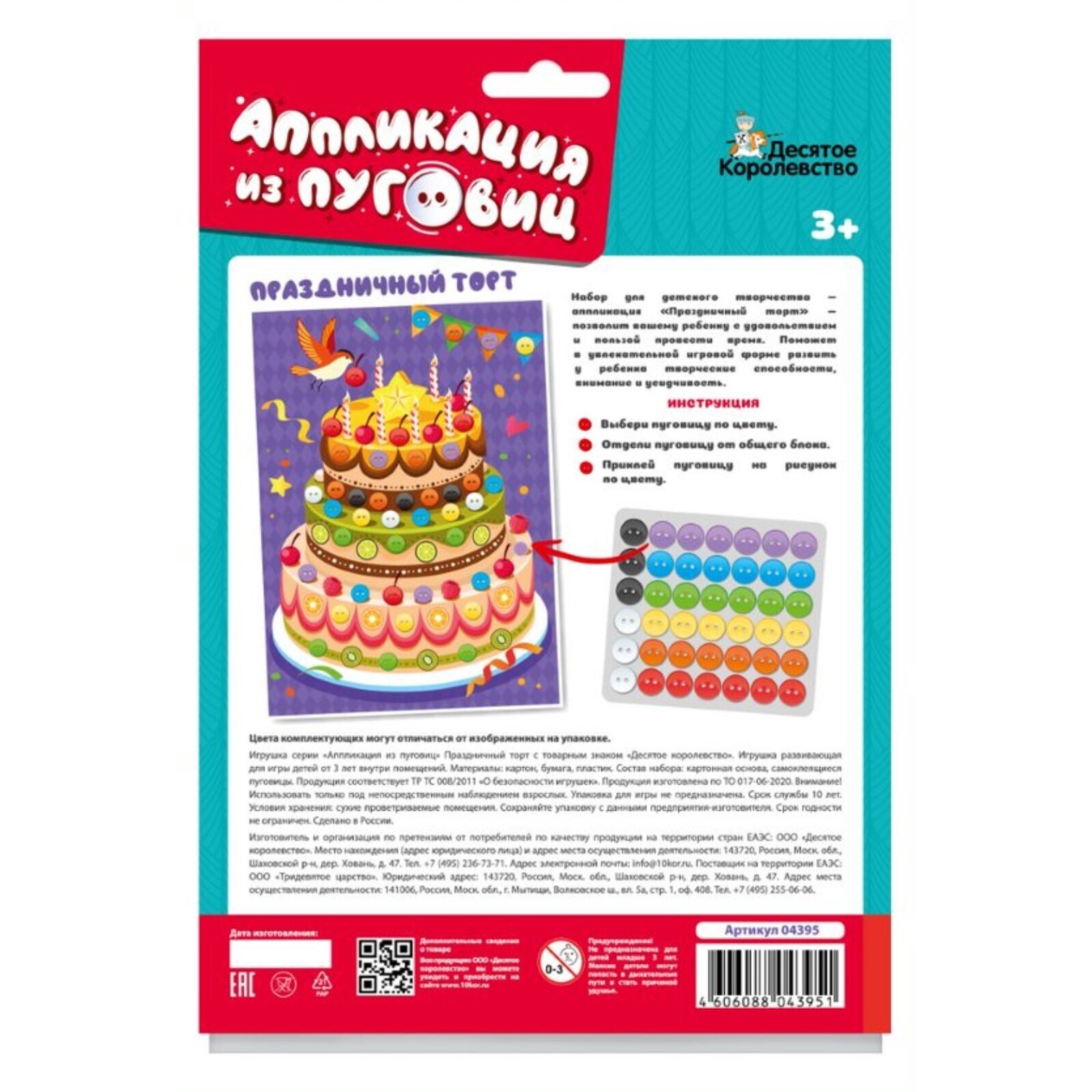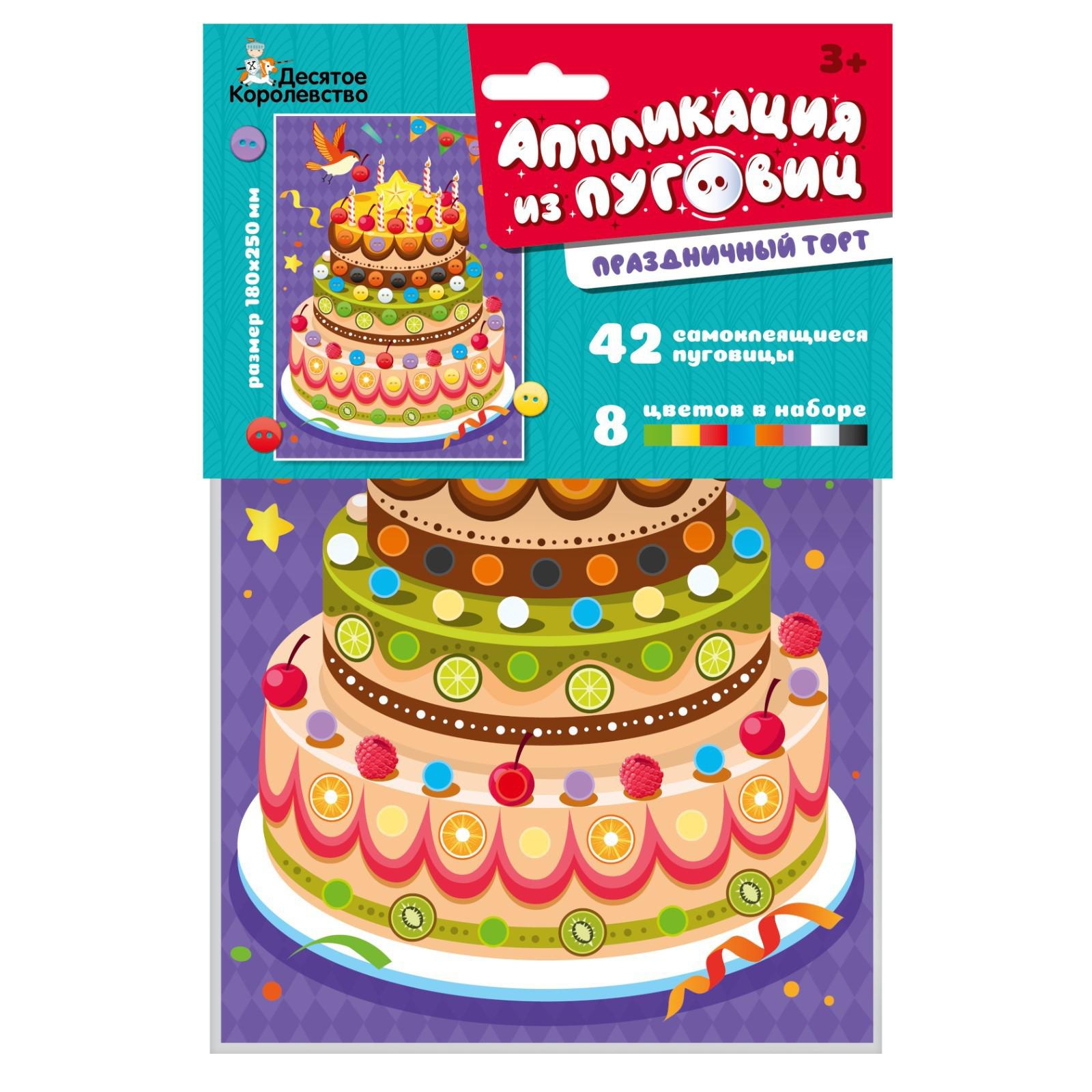 Набор для детского творчества аппликация из пуговиц «Праздничный торт» обязательно увлечет малыша яркими цветами и оригинальным исполнением!