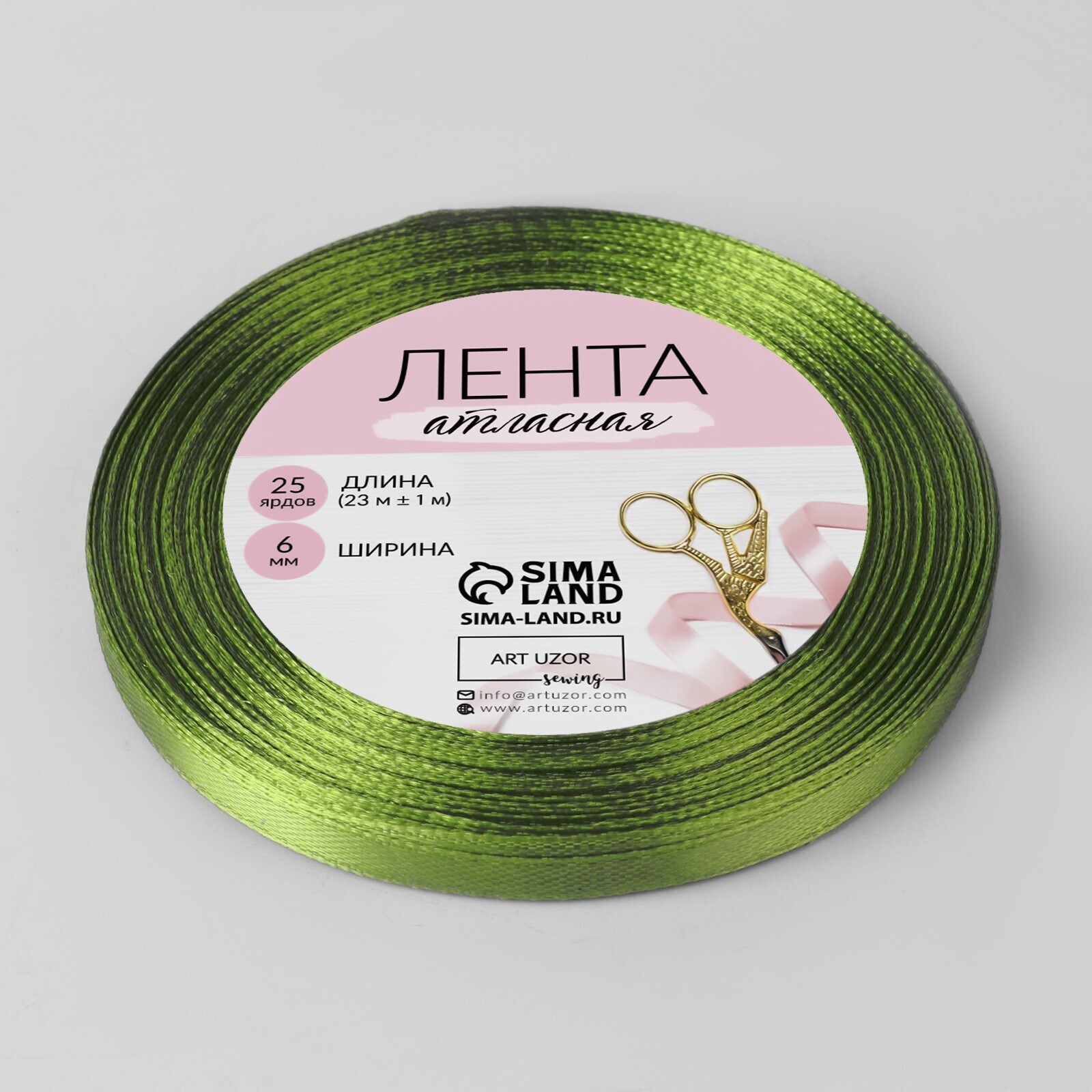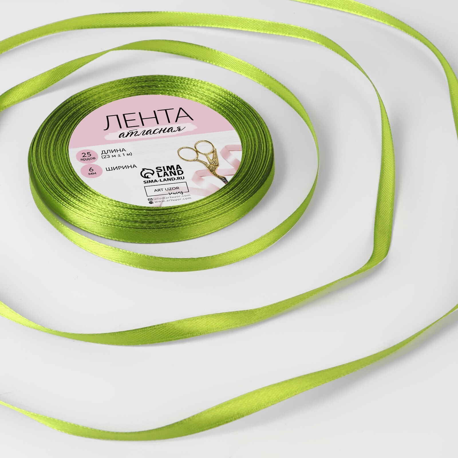 Лента атласная, 6 мм × 23 ± 1 м, цвет светло-оливковый №143