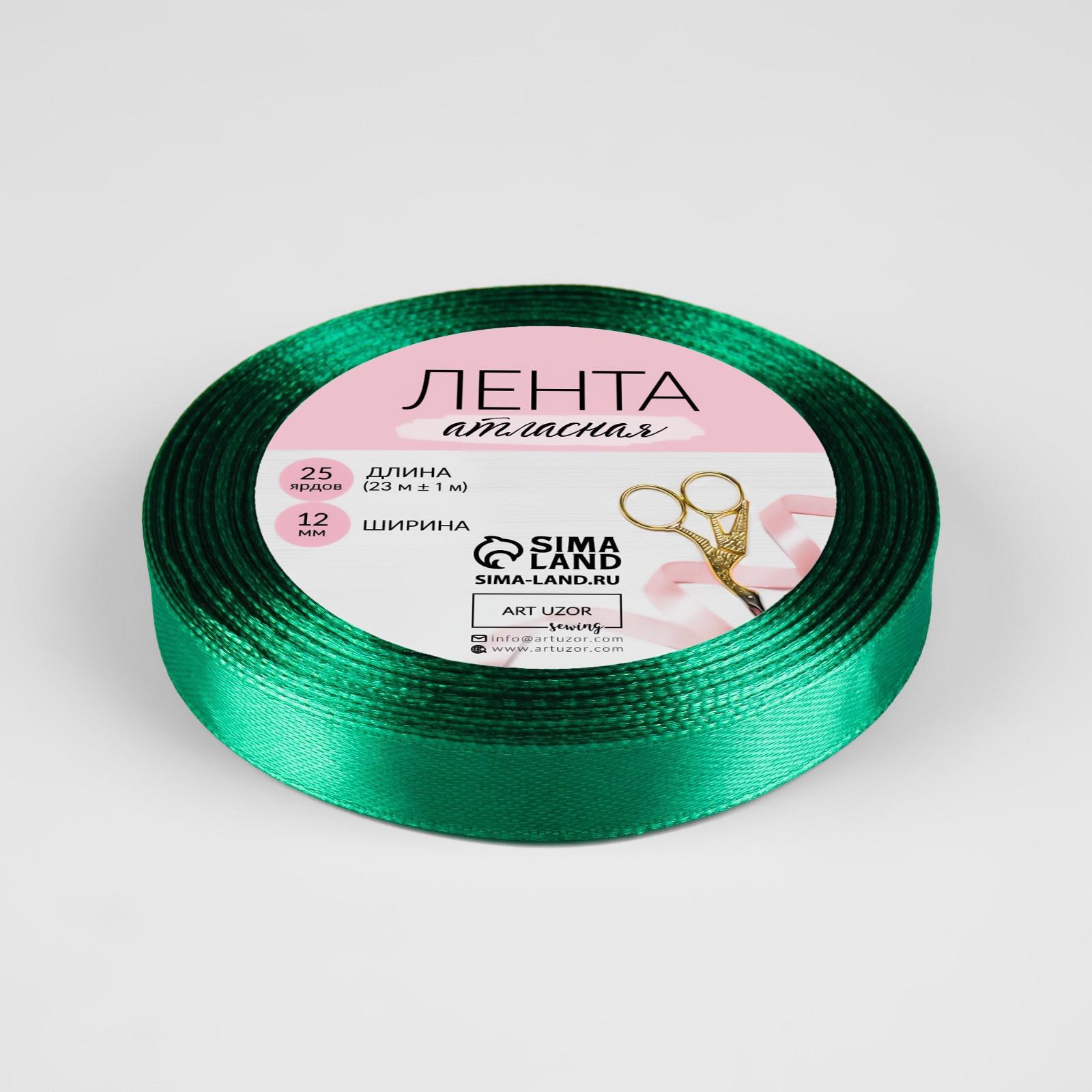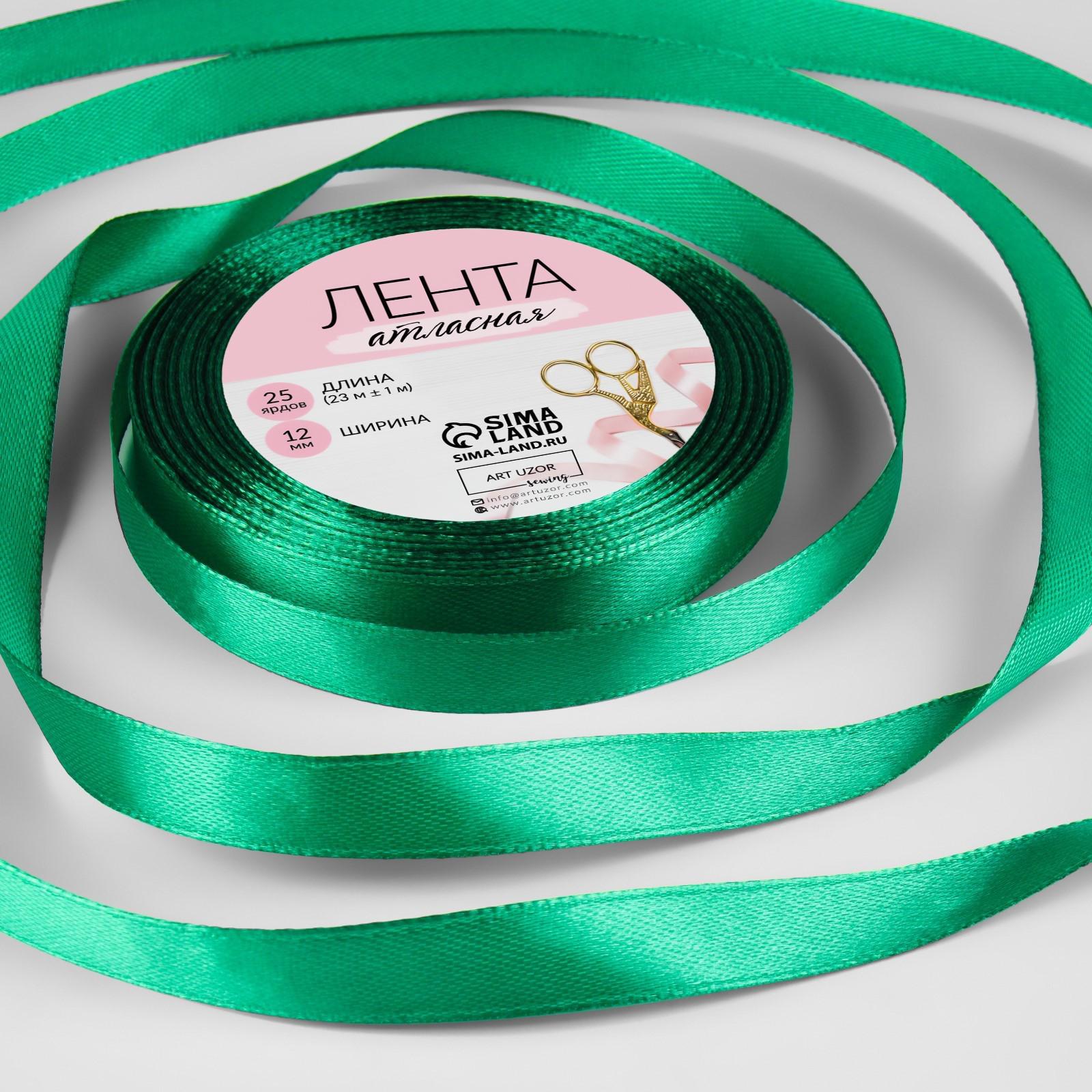 Лента атласная, 12 мм × 23 ± 1 м, цвет насыщенный зелёный №С1123