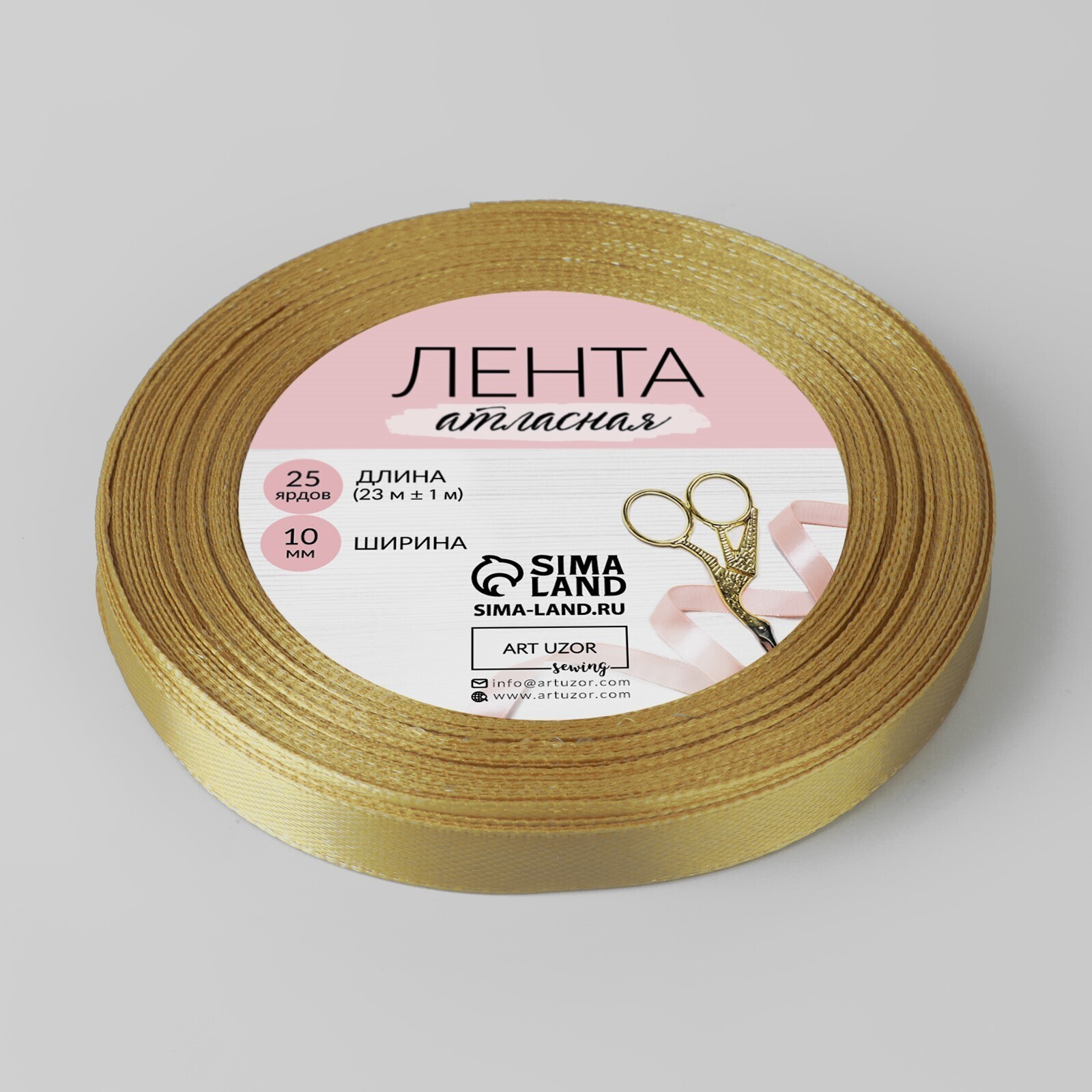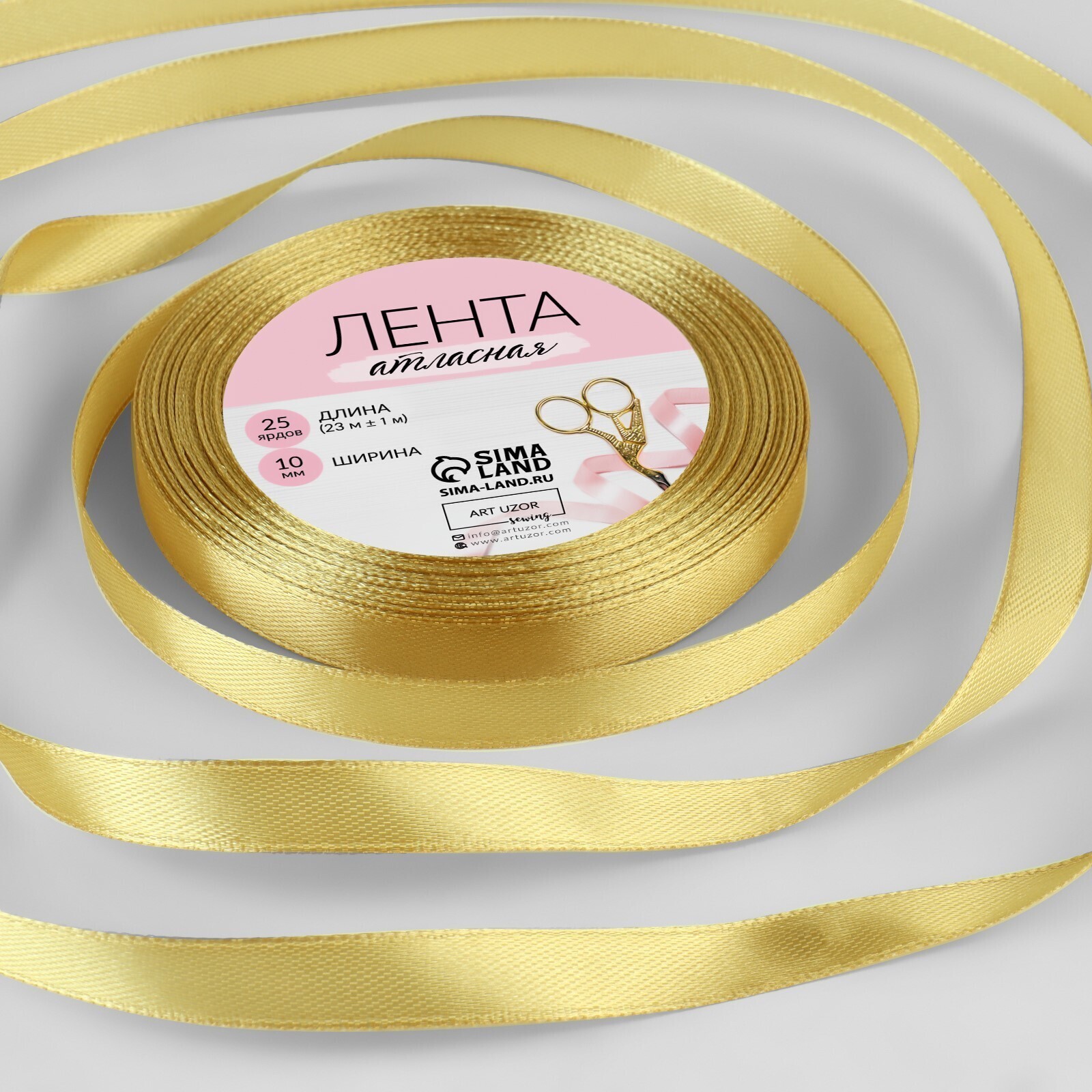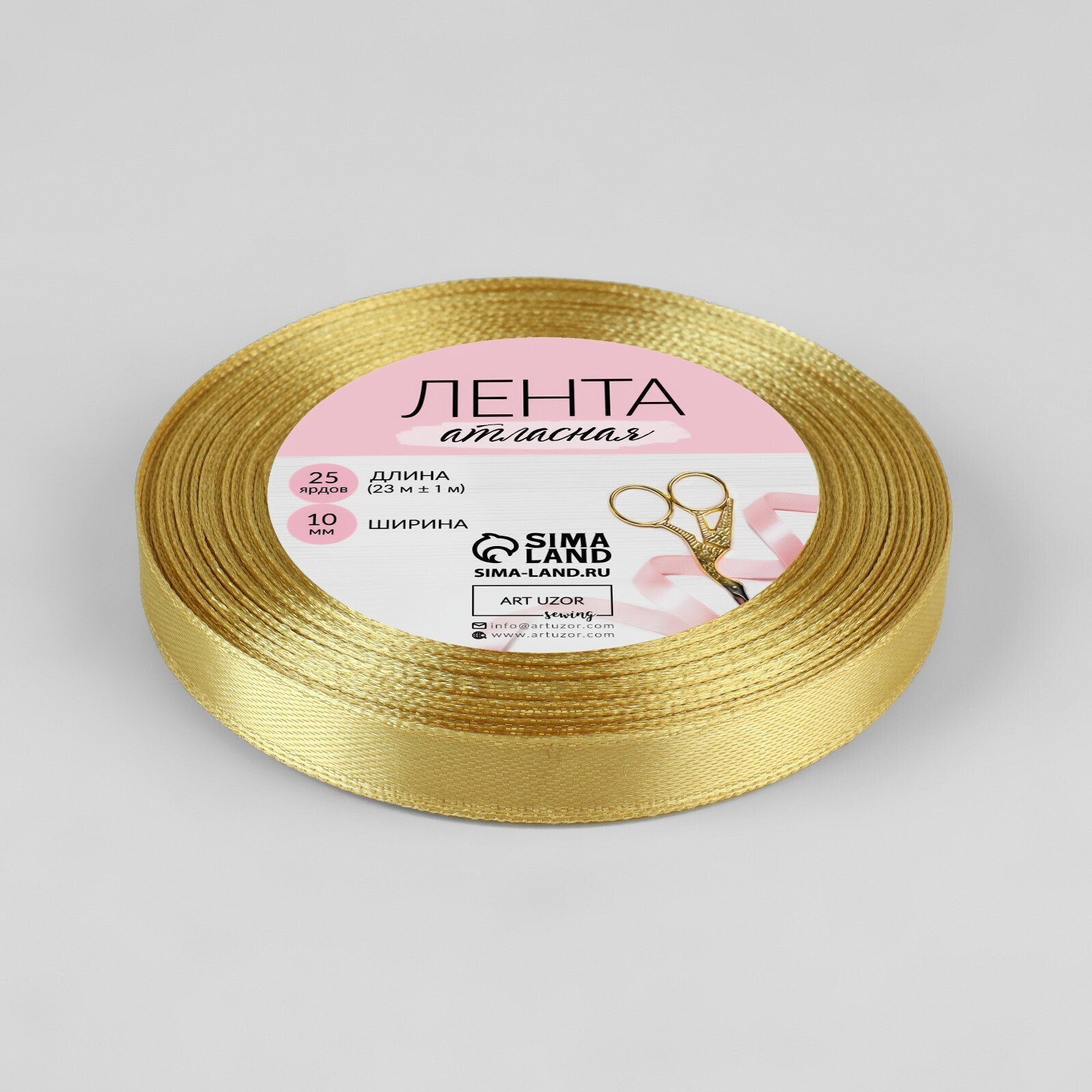Лента атласная, 10 мм × 23 ± 1 м, цвет золотой №104