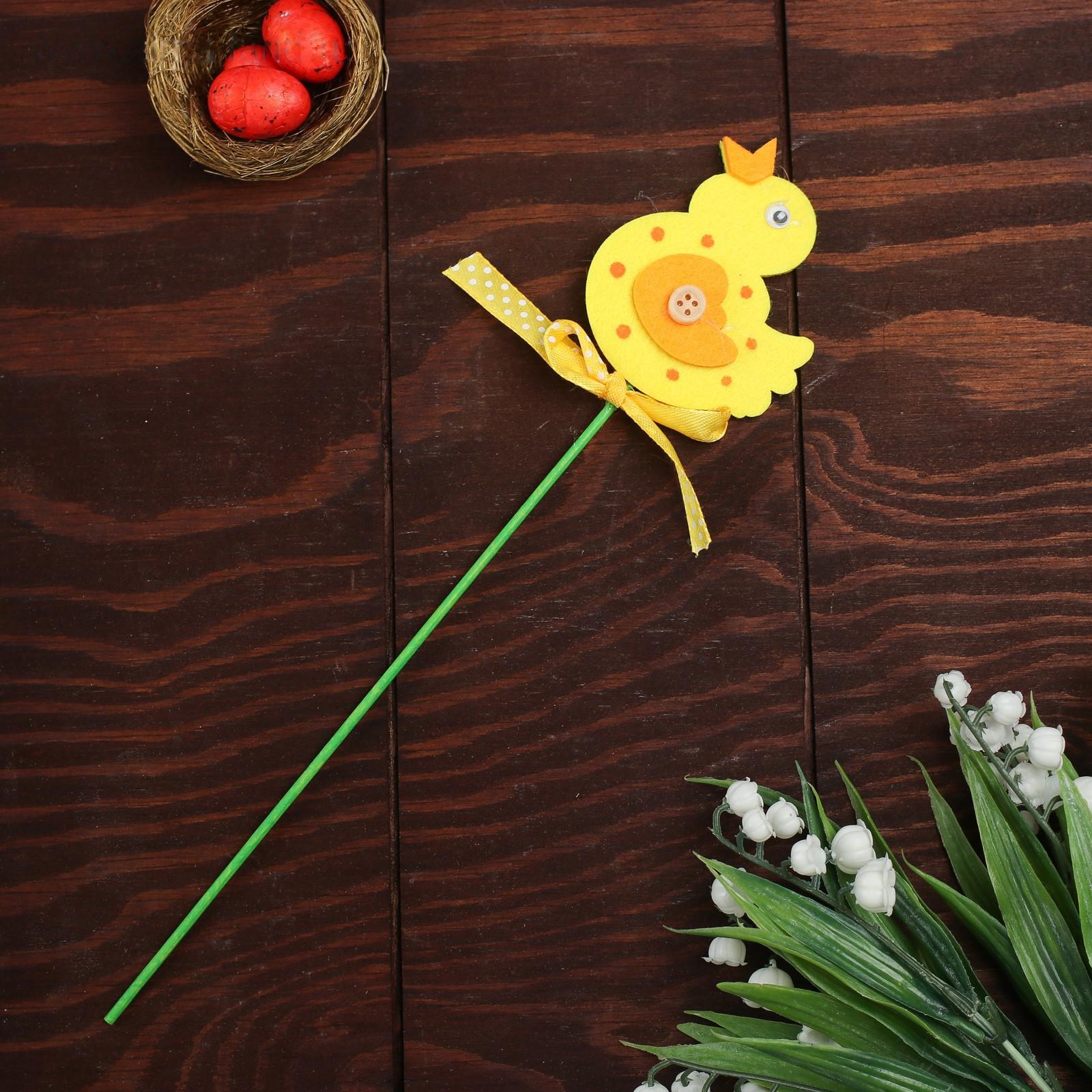 Сувенир на палочке, декор "Цыплёнок" будет прекрасным украшением праздничного стола и декором для композиции из пасхальных яиц. Цветочный горшок и букет станут более красивыми и оригинальными, если их дополнить сувениром на палочке.