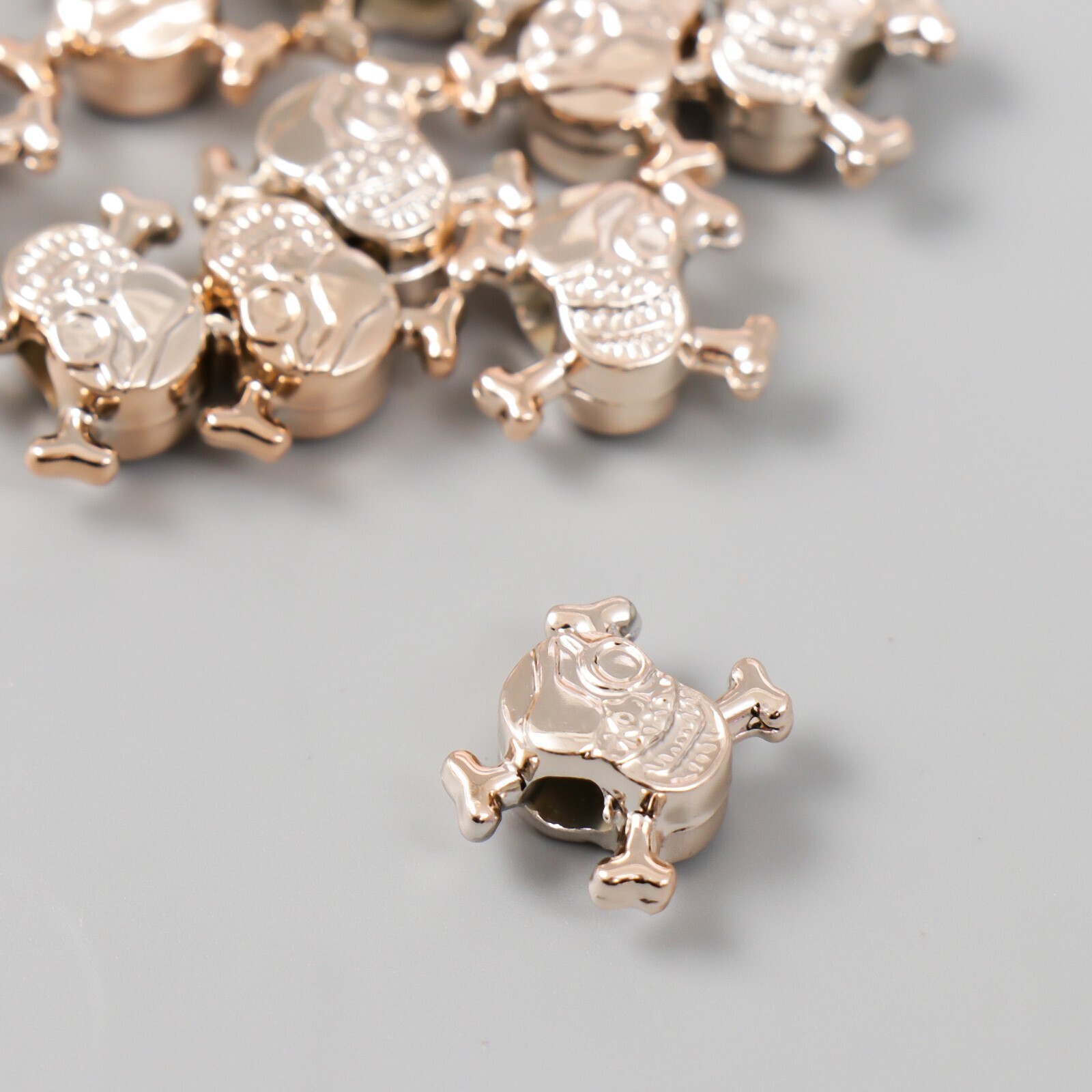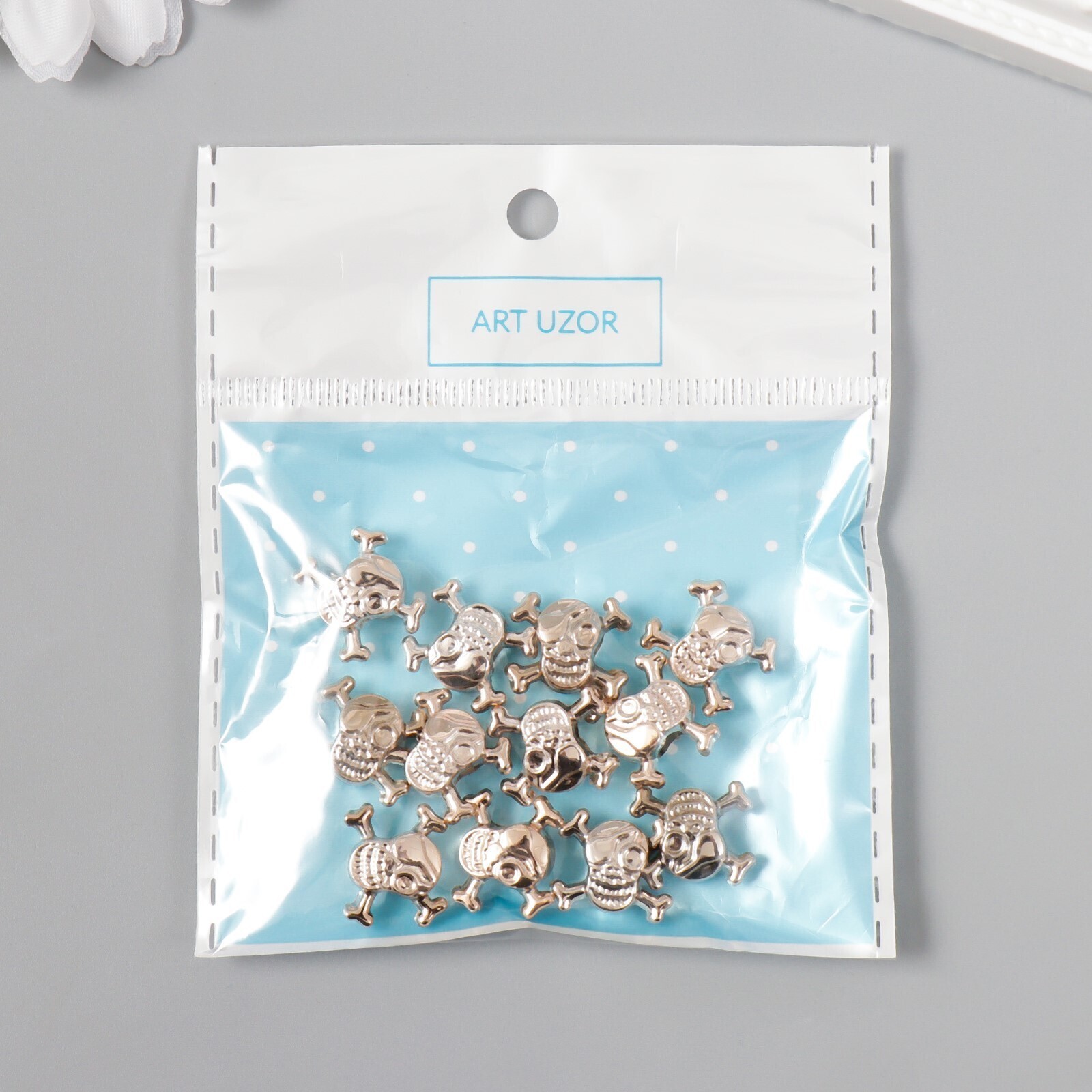 Бусины для творчества пластик "Череп" серебро набор 12 шт 1,4х1,4 см