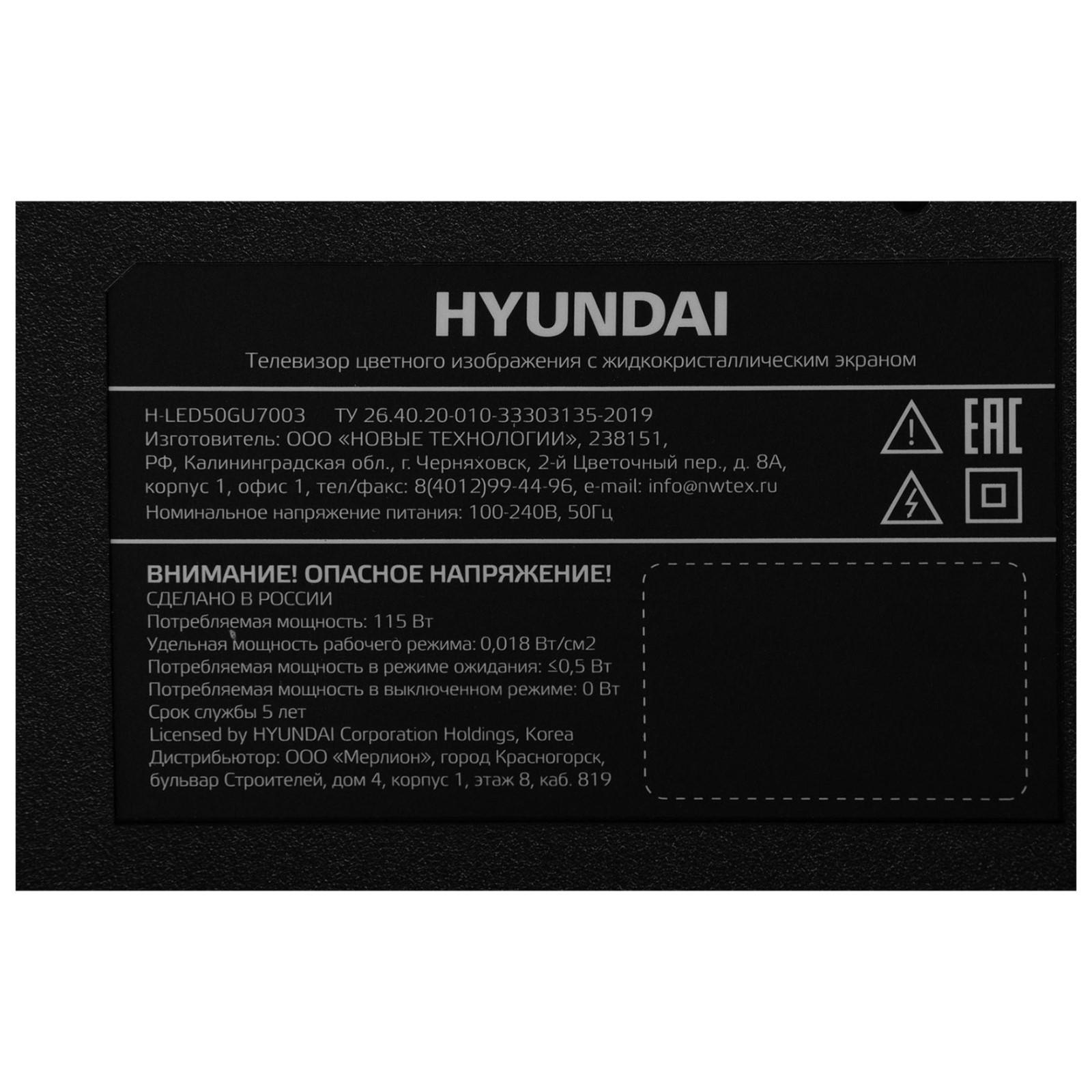 Телевизор Hyundai H-LED50BU7003, 50", 3840x2160, DVB-C/T2/S2, 3xHDMI, 2xUSB, SmartTV, черный 93298