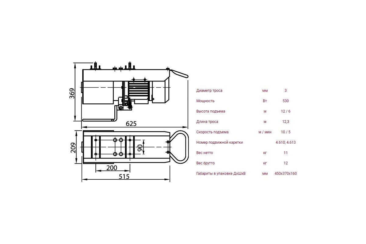 Тельфер СОРОКИН 4.712 электро 0.125/0.25т 12/6м 530w