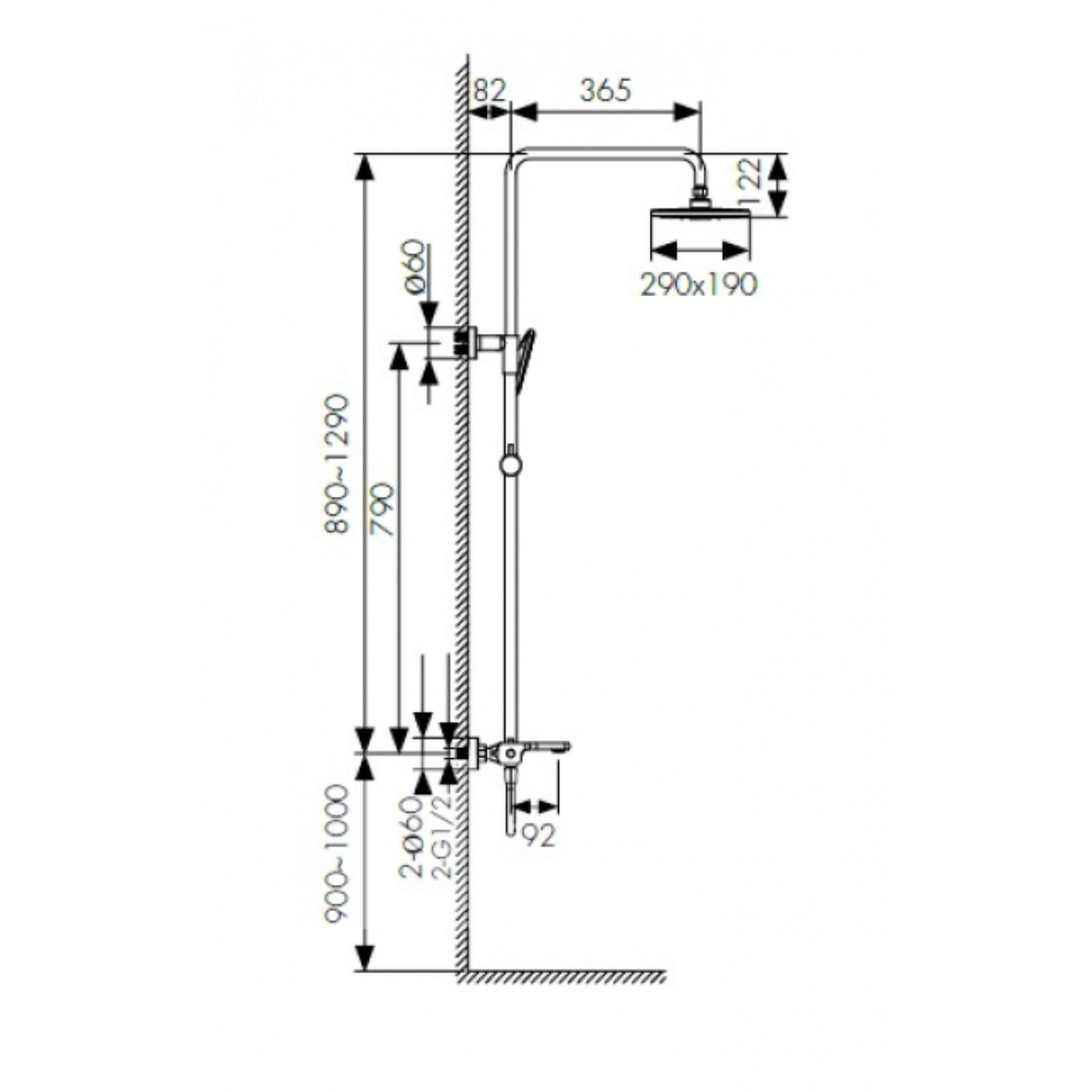Душевая система с термостатом KAISER Elite 01182, тропический душ, лейка, длинна 290мм, хром 69636