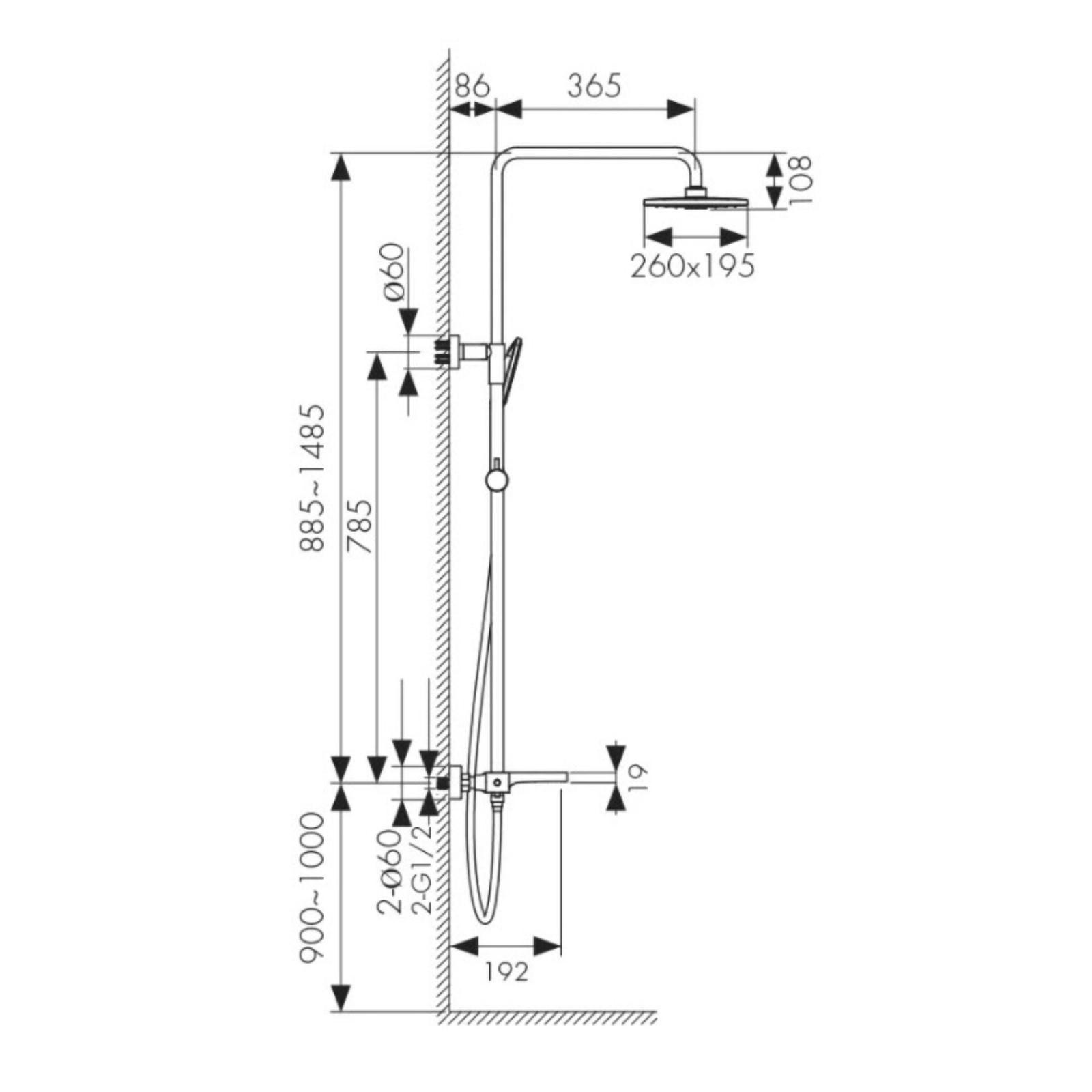 Душевая система KAISER Star 02182-2, с термостатом, тропический душ, лейка, черный