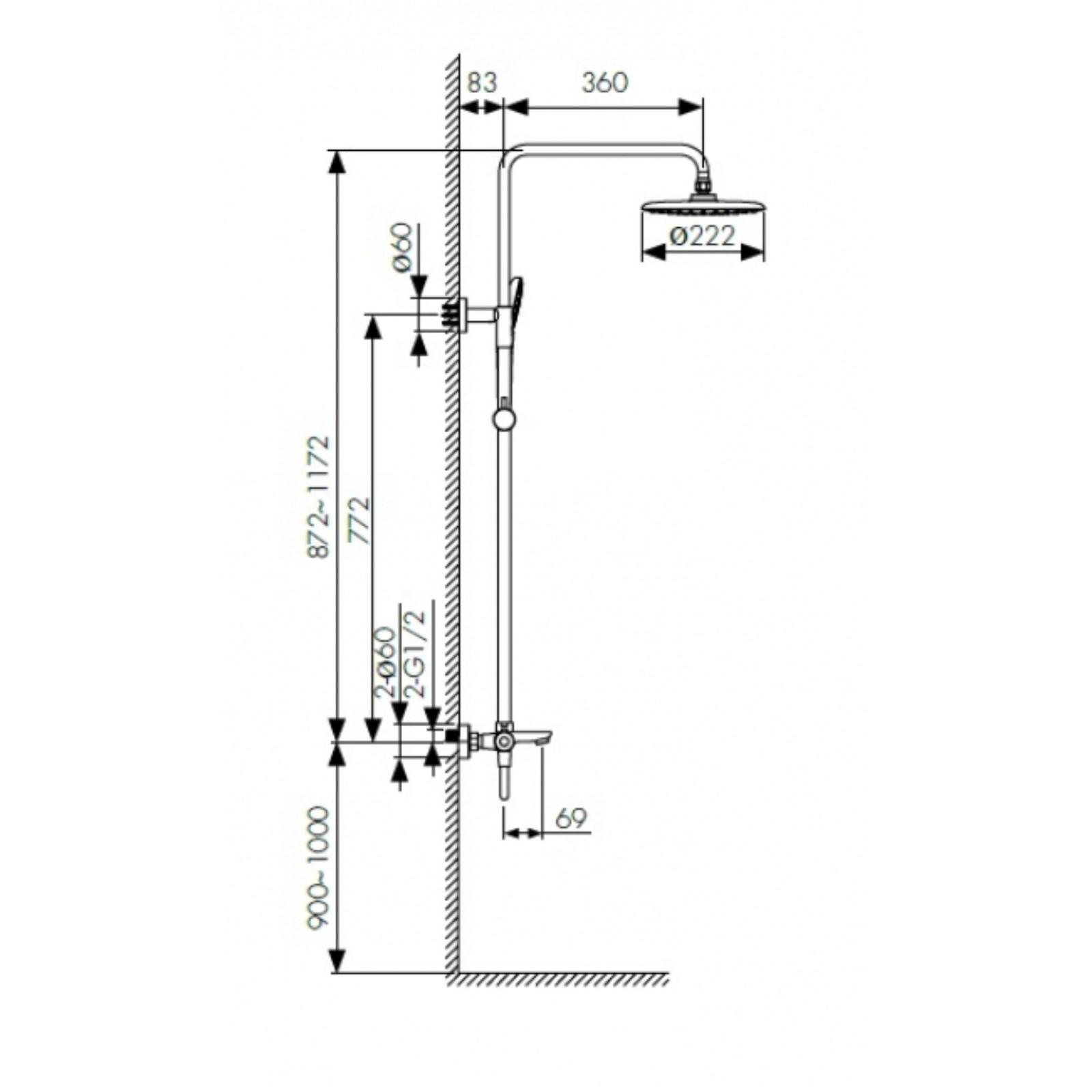Душевая система KAISER Cezar 05182-2, с термостатом, тропический душ, лейка, черный