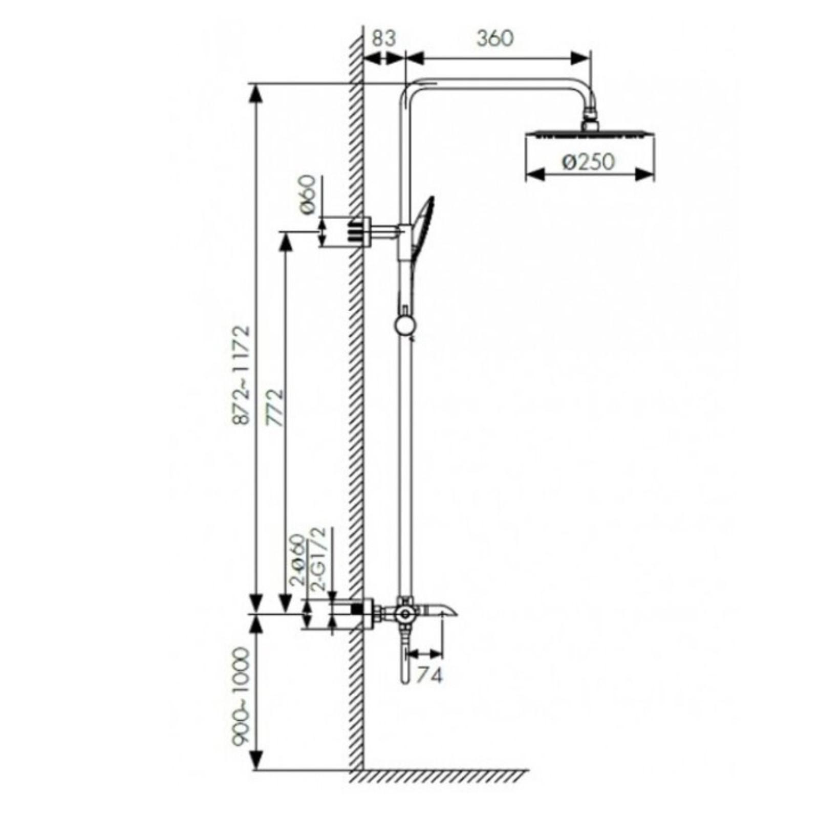 Душевая система KAISER Nove 06182, с термостатом лейка, тропический душ, хром