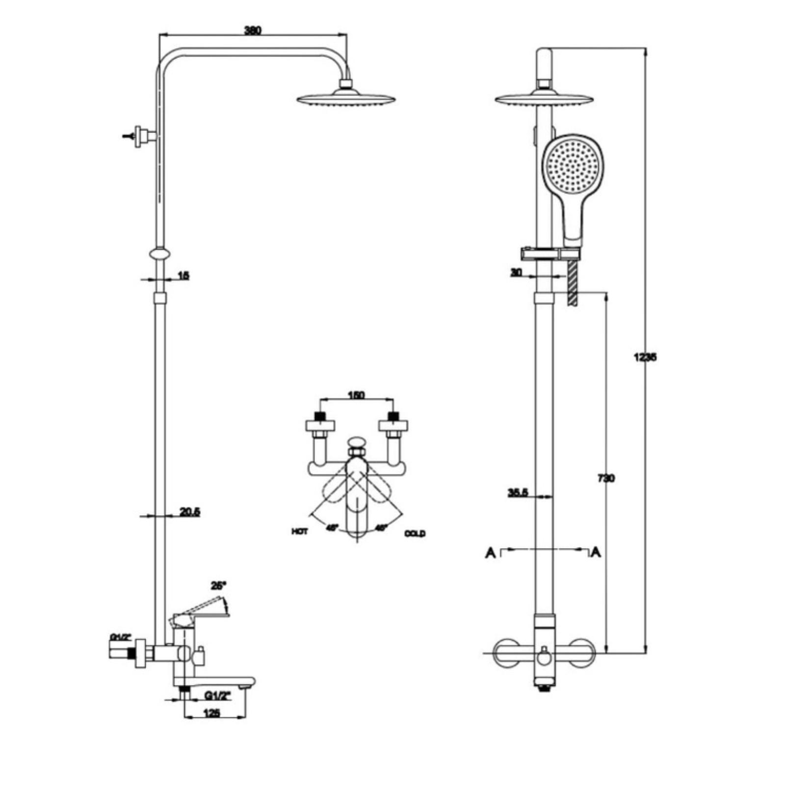 Душевая система KAISER Arena 33182, тропический душ, лейка, излив 125 мм, хром