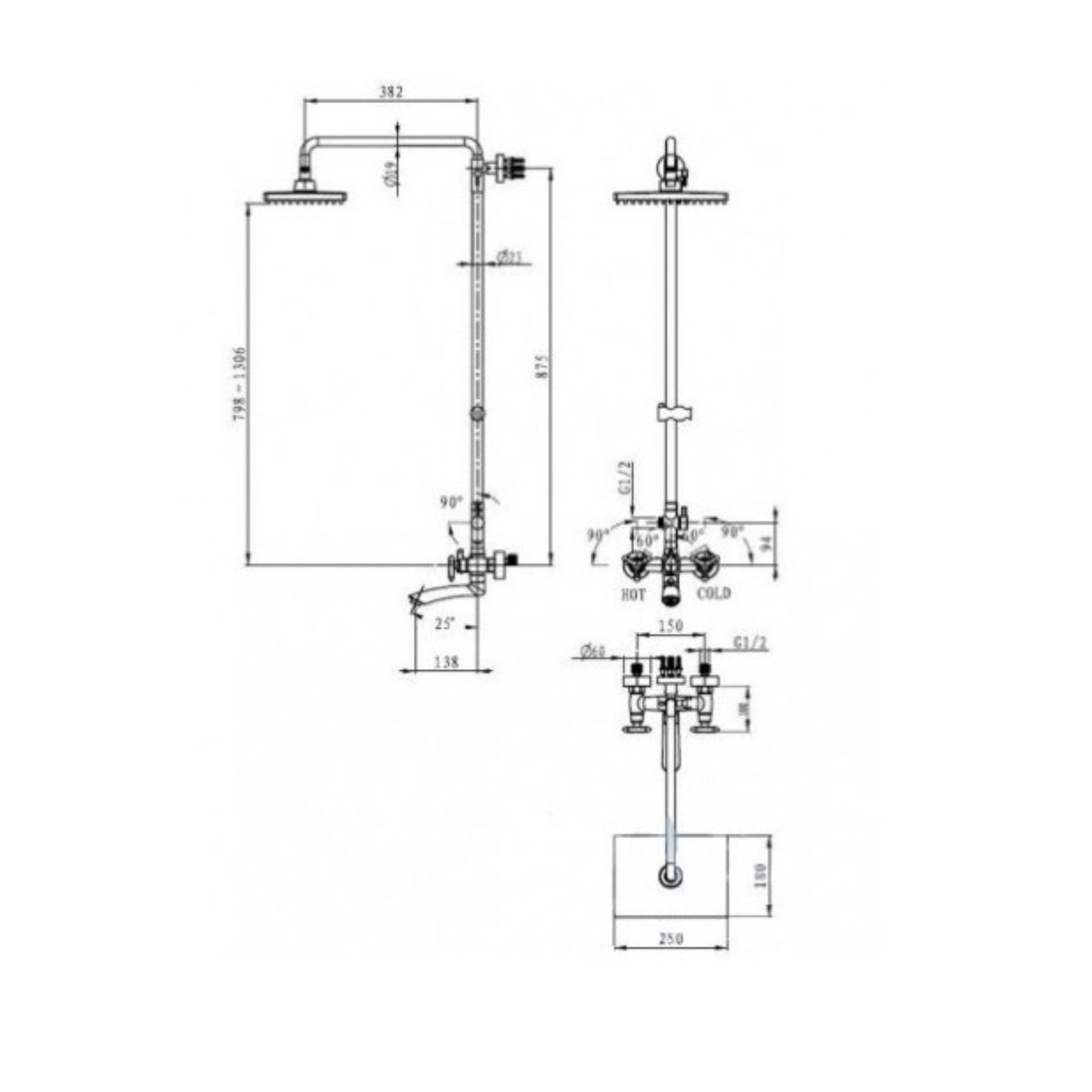 Душевая система KAISER Trio 57288, двухвентильный, лейка, тропический душ, хром