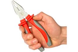 - Двухцветные многокомпонентные рукоятки изолированных пассатижей оснащены упорами для защиты от соскальзывания;