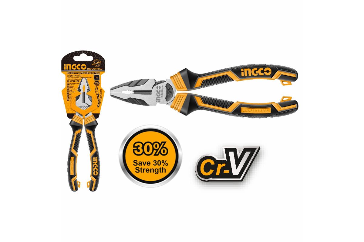 Пассатижи (плоскогубцы) комбинированные 7''/180мм; на 30% сильнее INGCO INDUSTRIAL HHCP28180