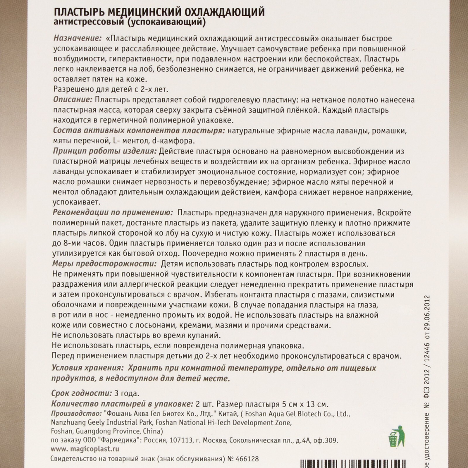 Пластырь медицинский охлаждающий, успокаивающий, антистресс, для детей 5 х13 см