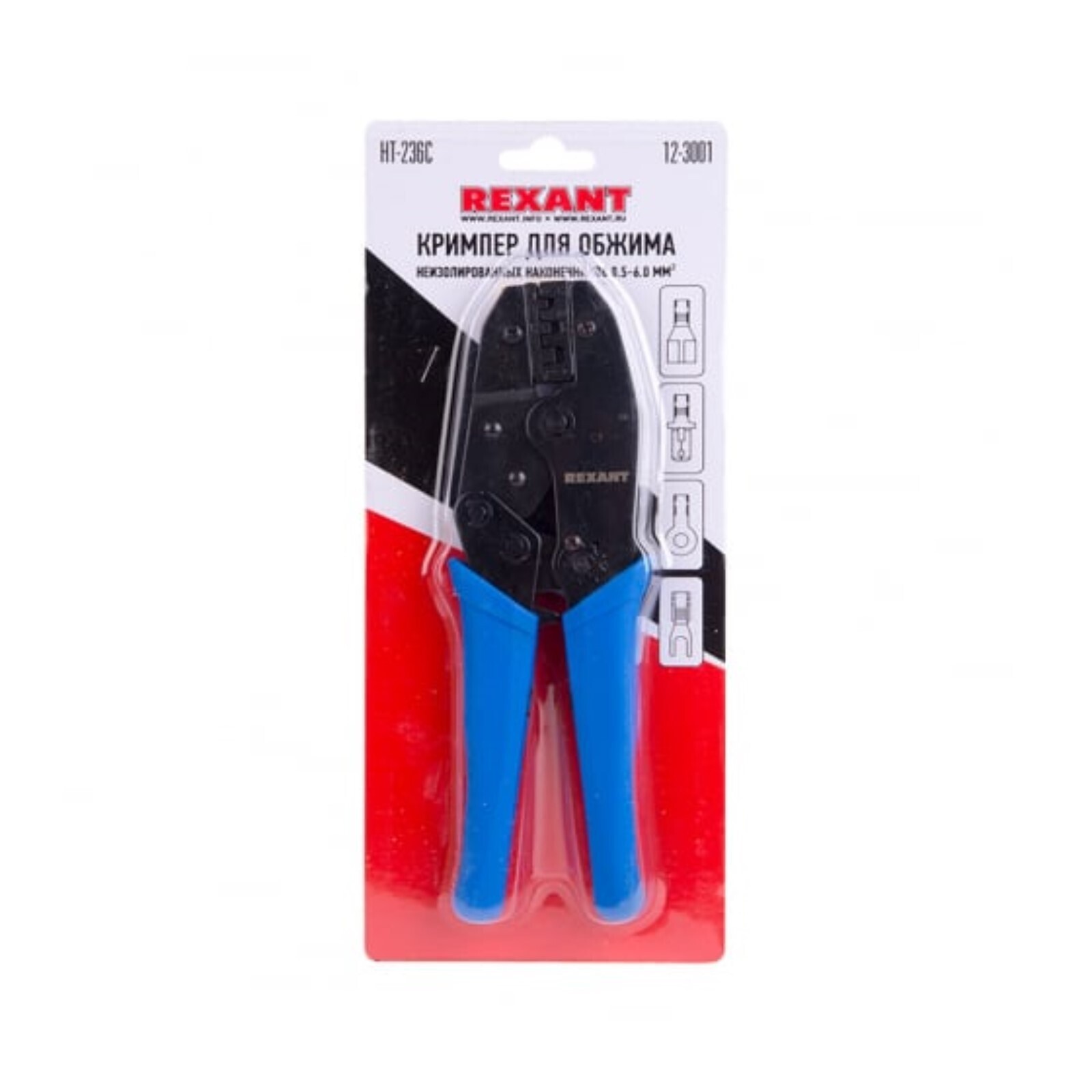 Кримпер REXANT HT-236C, для обжима автоклемм неизолированных, 0.5-6 мм², храповой механизм