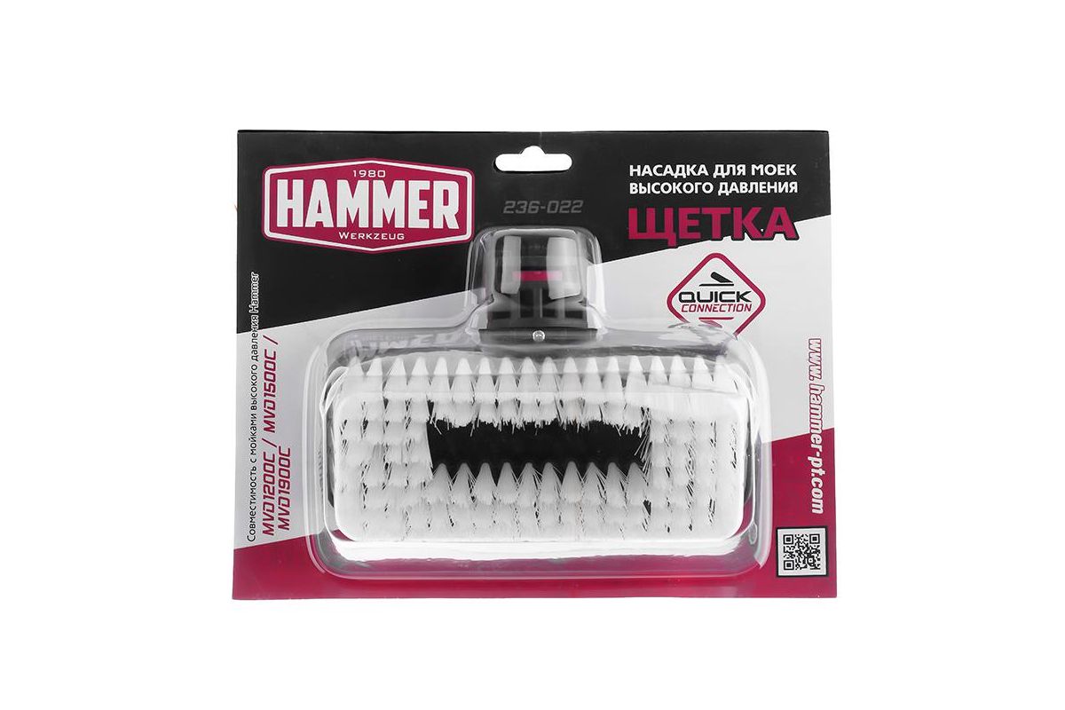 HAMMER 236-022 – щётка-насадка для моек высокого давления. Совместима с мойками Hammer Flex MVD1200B, MVD1500B и MVD1900. Пригодится, чтобы содержать автомобиль в чистоте.