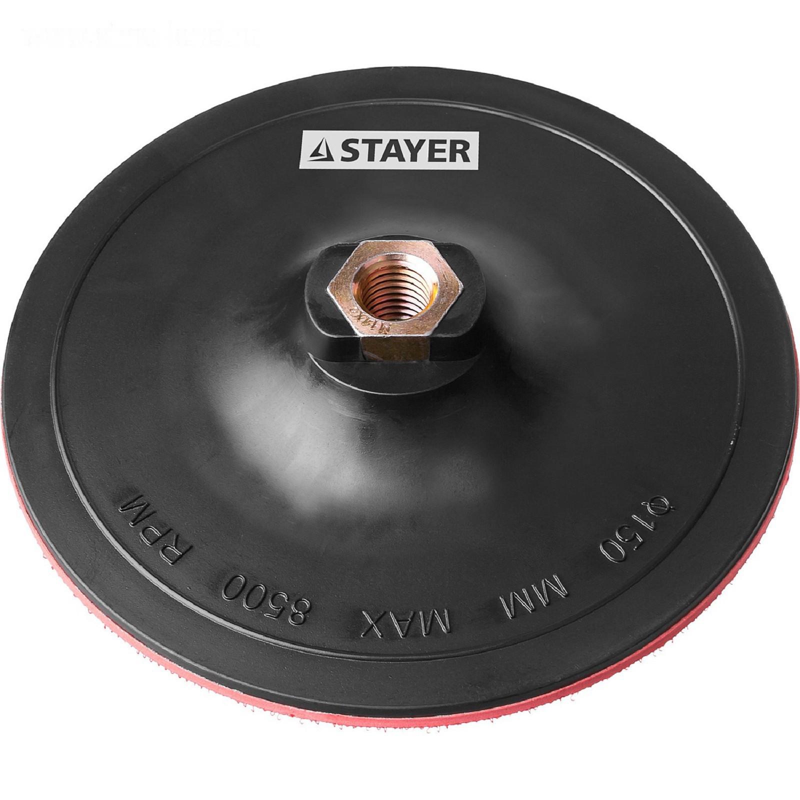 Тарелка опорная для УШМ STAYER 35742-150, М14, 150 мм, пластиковая, на липучке