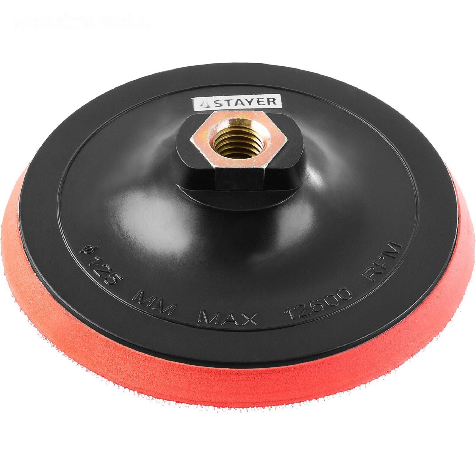 Тарелка опорная для УШМ STAYER 35744-125, М14х125 мм, на липучке, полиуретановая вставка