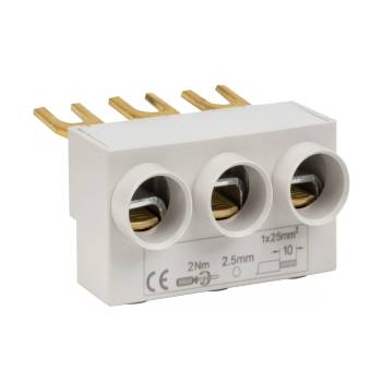 Клеммный блок контактов КМЭ AVERES предназначен для увеличения максимального сечения проводника до 25 мм2, подключаемого к силовым клеммам контакторов. Устанавливаются снизу и сверху контактора.