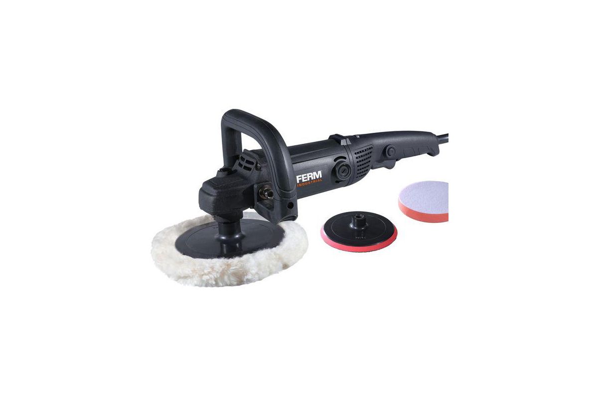 Полировальная машина. Предназначена для удаления ржавчины, полировки и шлифования различных поверхностей, а также очищения панелей. Оснащена полировальным диском диаметром 180 мм, поэтому можно легко полировать большие поверхности. Эргономичный дизайн и дополнительная ручка обеспечивают комфортную простоту использования. Опорная пластина оснащена липучкой, поэтому диски легко менять и чистить.