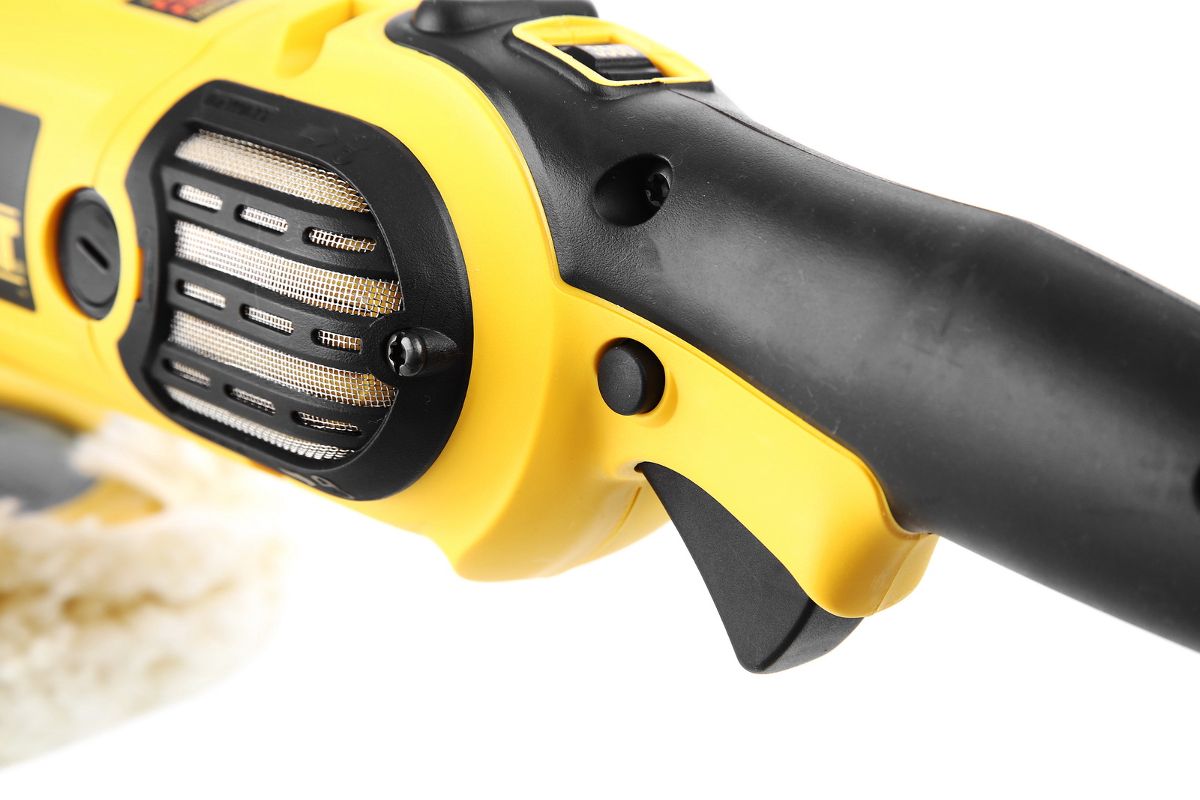 Полировальная машина чрезвычайно удобна в использовании. Идеальный выбор для шлифования, полировки, сухой обработки потолков, стен, окрашенных поверхностей. Работает с любыми материалами. Безусловный плюс — производительный двигатель с высокой стойкостью к перегрузкам благодаря запасу мощности и наличию совершенной системы воздушного охлаждения. DeWALT DWP849X снабжен системой автоматического окончания работы на случай нулевого напряжения. Сменные сетчатые экраны предохраняют инструмент от случайного попадания пыли, шерсти и других посторонних материалов. Конструкция допускает использование сменных полировальных/шлифовальных подошв диаметром вплоть до 230 мм. Конструкция двигателя предотвращает перегрев. В зависимости от режима работы и характеристики инструмента, скорость вращения можно изменить при помощи большого дискового регулятора. Вибрация гасится при помощи специального покрытия рукоятки. Машина снабжена электронной регулировкой скорости.