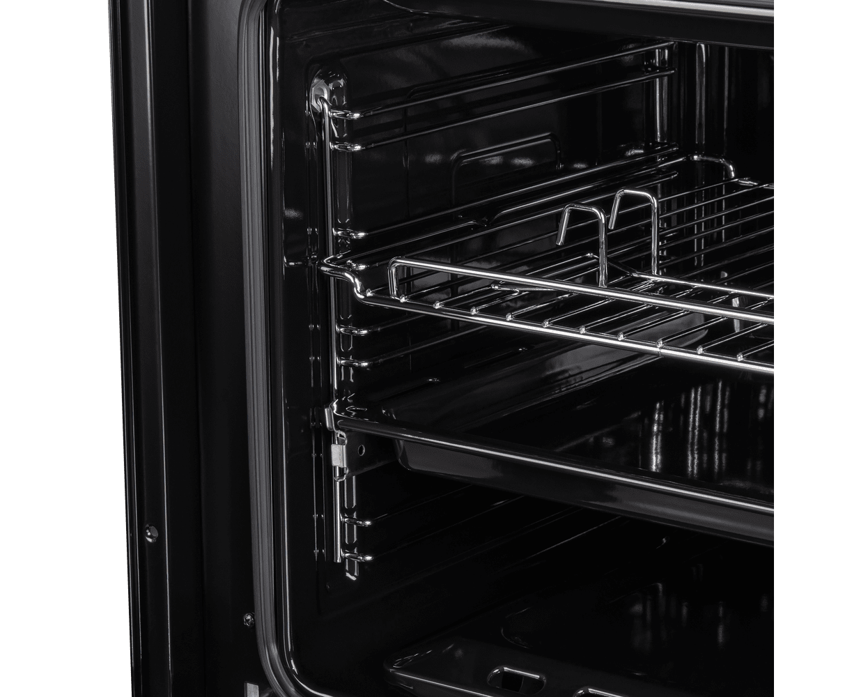 Объем 60 л при стандартной ширине духового шкафа 60 см позволяет готовить одновременно несколько блюд, разместив решетку или противень на одном из 5-ти уровней боковых направляющих. Один уровень оснащен удобными телескопическими направляющими. Внутреннее покрытие камеры выполнено из специальной легкоочищающейся эмали черного цвета.