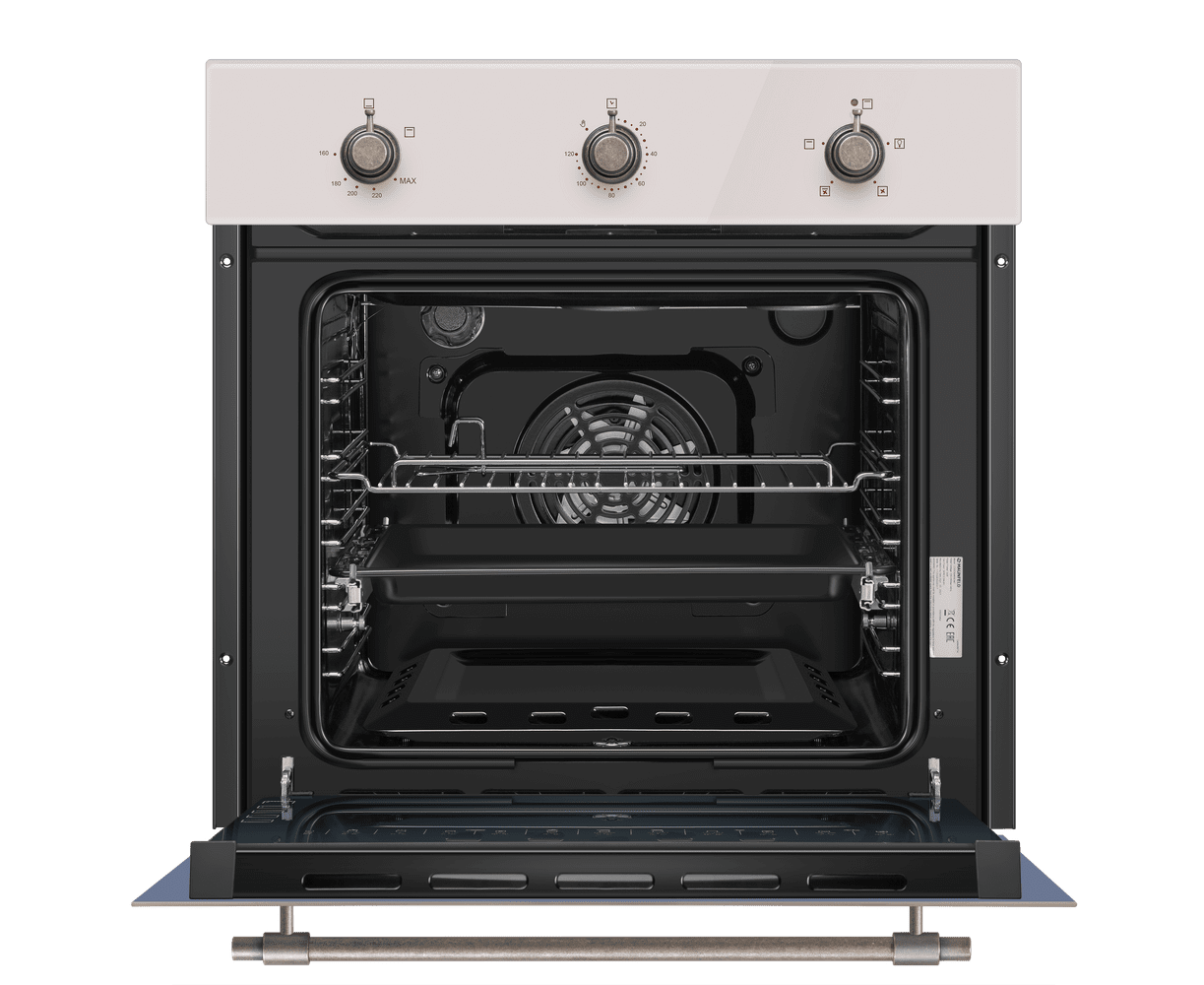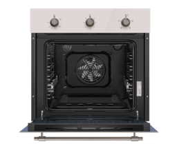 Механическое управление осуществляется цельнометаллическими поворотными ручками. Можно выставить температуру готовки, установить таймер (0-55 мин) и выбрать один из 5 режимов работы: нижний газовый нагрев с вентилятором (конвекция), традиционная готовка, вентилятор, освещение. Данная модель работает как при открытом, так и при закрытом гриле.