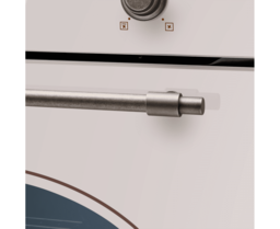 Фронтальная панель дверцы, лицевая часть блока управления и фасад ручки дверцы сделаны из высококачественного жаропрочного стекла, окрашенного по всему объему, что является отличительной чертой бытового прибора премиум-класса.