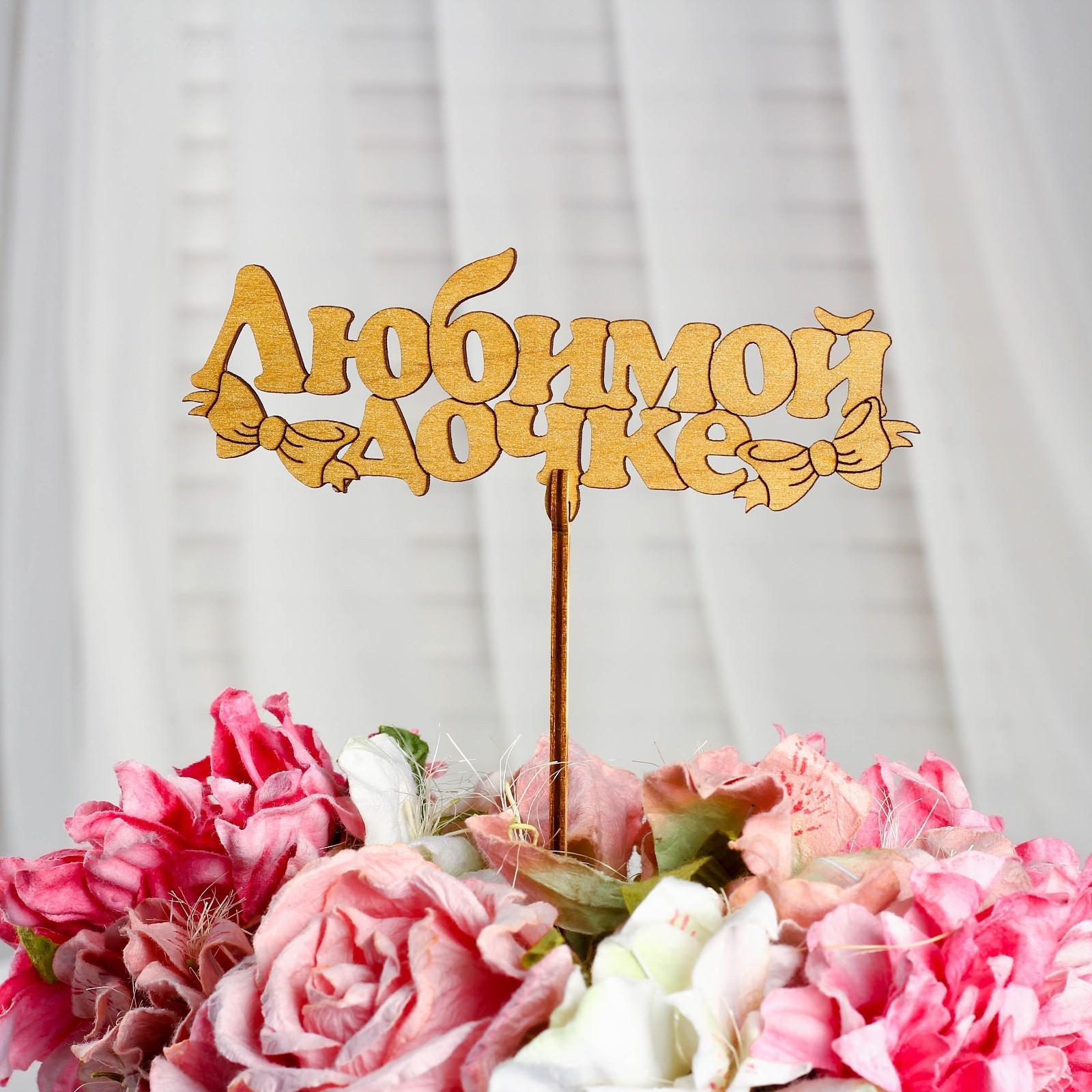 Топпер "Любимой дочке", золотой, 14,5×5,5 см Дарим Красиво