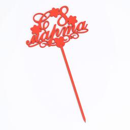 Топпер "С 8 Марта, с цветочками" 14×9 см Дарим Красиво цвет МИКС