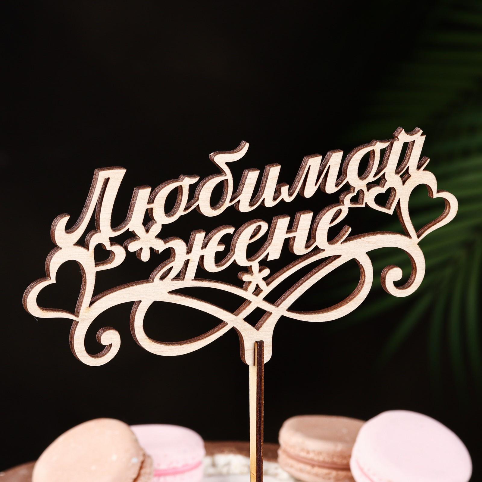 Топпер "Любимой жене" 16,5х8,1 см бежевый Дарим Красиво