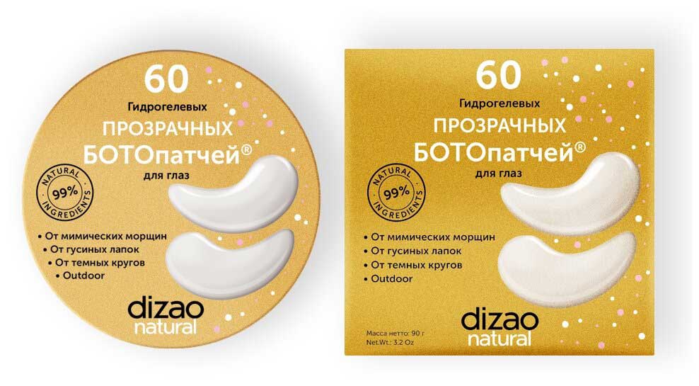 Описание товара Гидрогелевых прозрачных БОТОпатчей для глаз Dizao от мимических морщин от гусиных лапок и темных кругов