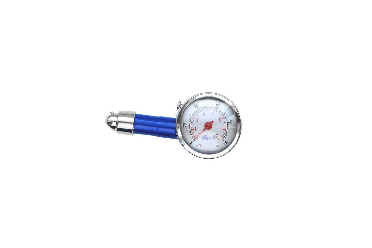 Манометр KRAFT KT 830002 аналоговый Металический корпус. 0-100PSI(7ATM). Аналоговая шкала. Кнопка сброса показаний.