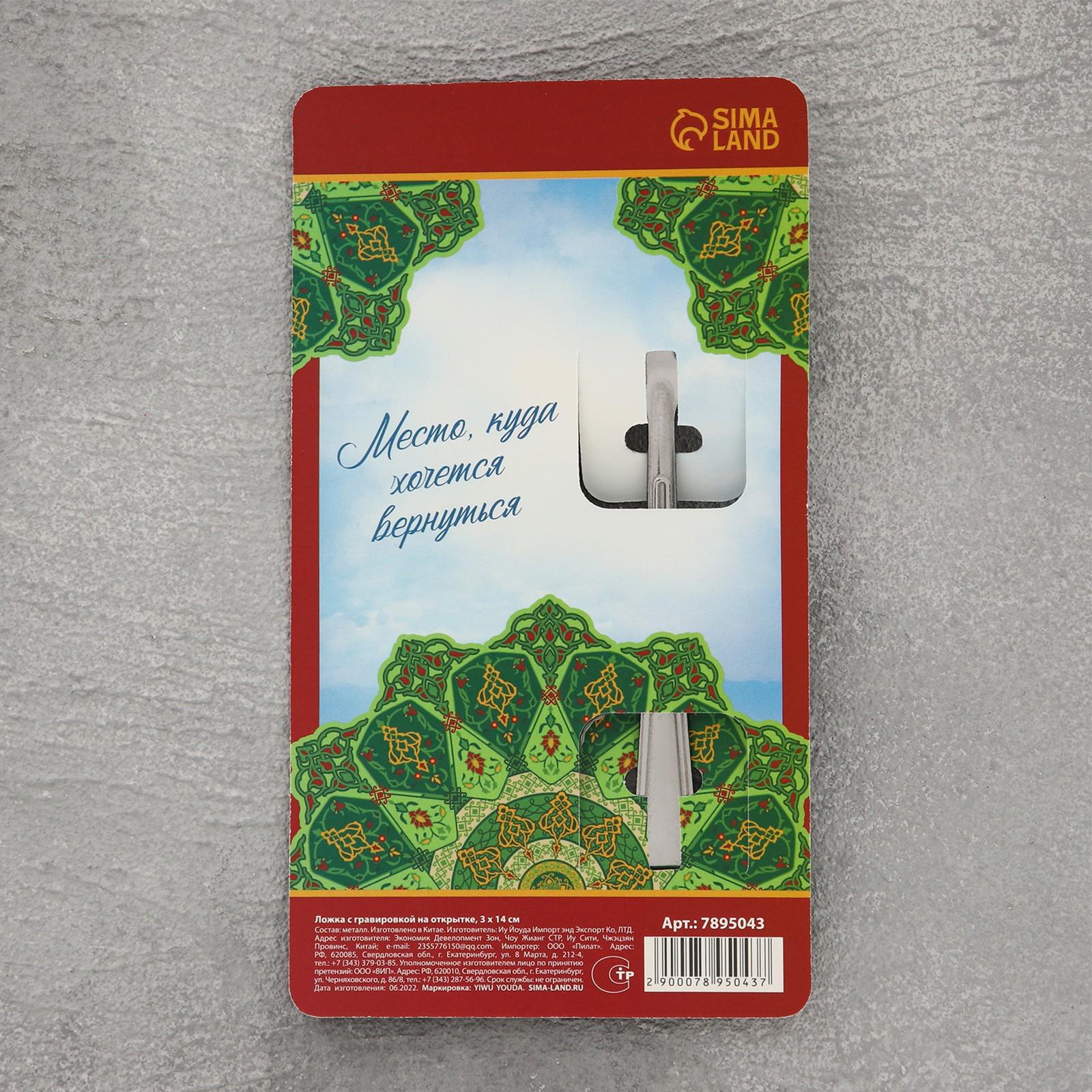 Сувенирная ложка изготовлена из металла, на которую нанесена поздравительная гравировка. Благодаря подарочной открытке с изображением любомого города, чайная ложка с гравировкой станет прекрасным сувениром для близких.