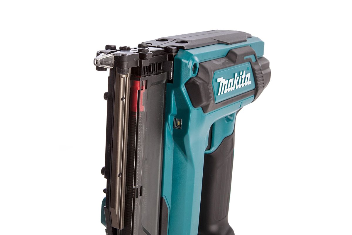 Скобозабиватель Makita PT354DZ используется для вбивания штыревых гвоздей диаметром 0,6 мм в строительные материалы. Совместим с литий-ионными аккумуляторами напряжением 10,8-12 В. Инструмент позволяет регулировать глубину забивания крепежа. Для удобства работы в слабоосвещенных местах предусмотрена подсветка. Обрезиненная рукоять обеспечивает надежный хват.