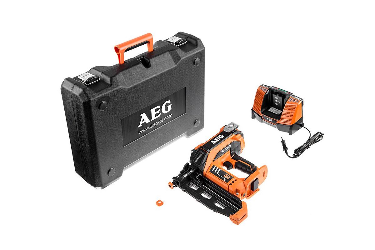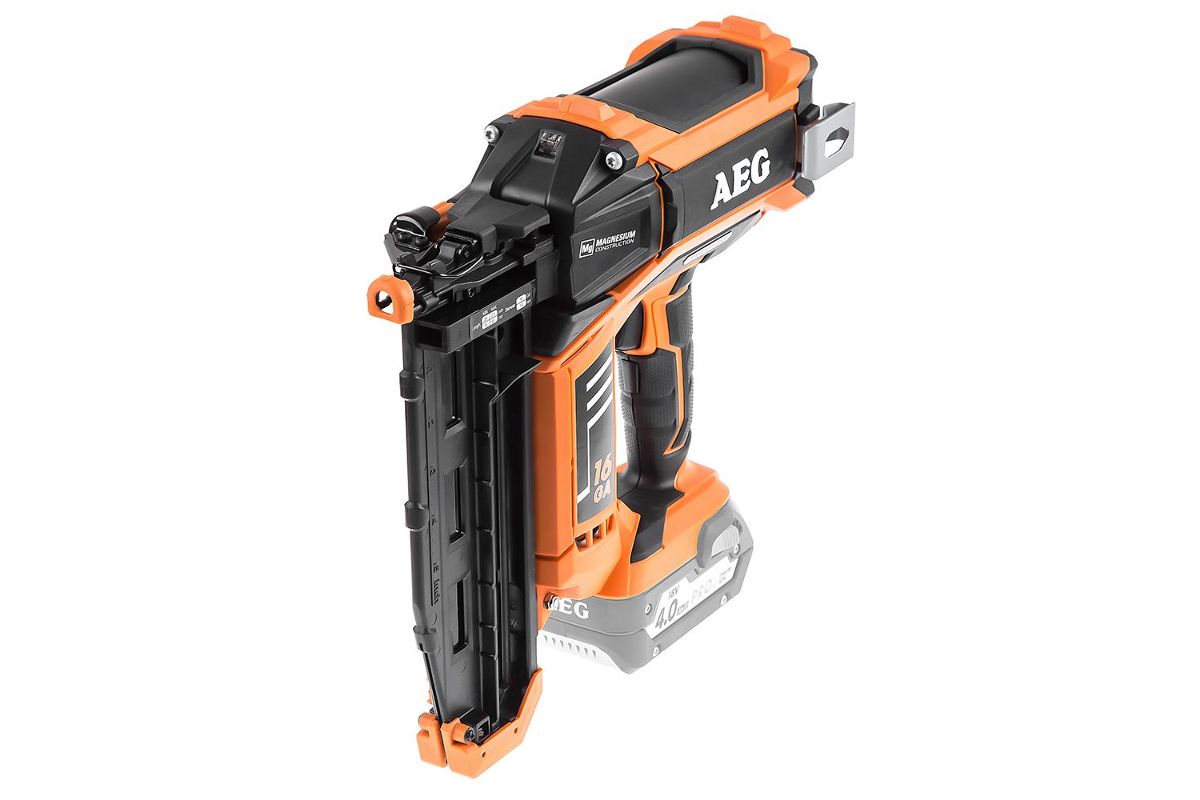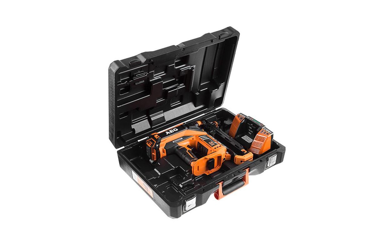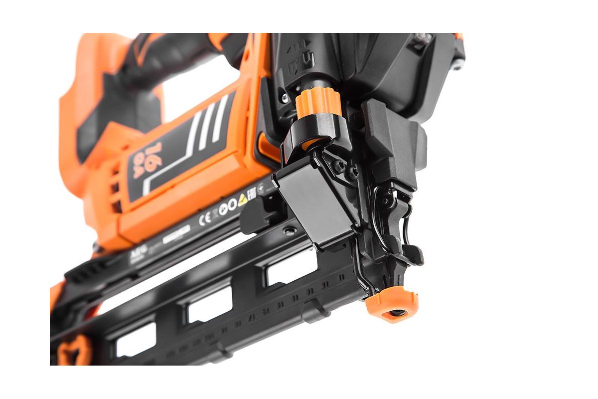 AEG B16N18-0 451533 –аккумуляторный гвоздезабивной степлер с бесщёточным двигателем для установки поперечных планок забора, обшивке стен вагонкой или гипроком, сборки деревянных конструкций, установки молдингов, дверей, фурнитуры и т.д. Совместим с гвоздями диаметром 1,6 мм и длиной от 19 до 65 мм. Забивает до 120 гвоздей в минуту. Работает на 18 В литий-ионом аккумуляторе. Подходит для профессиональных отделочных и плотницких работ.