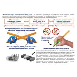 Тренажер позволяет в игровой форме, без усилий выработать правильную постановку пальцев при обучении ребенка рисованию и технике письма – ручку (карандаш) держать легко и удобно.