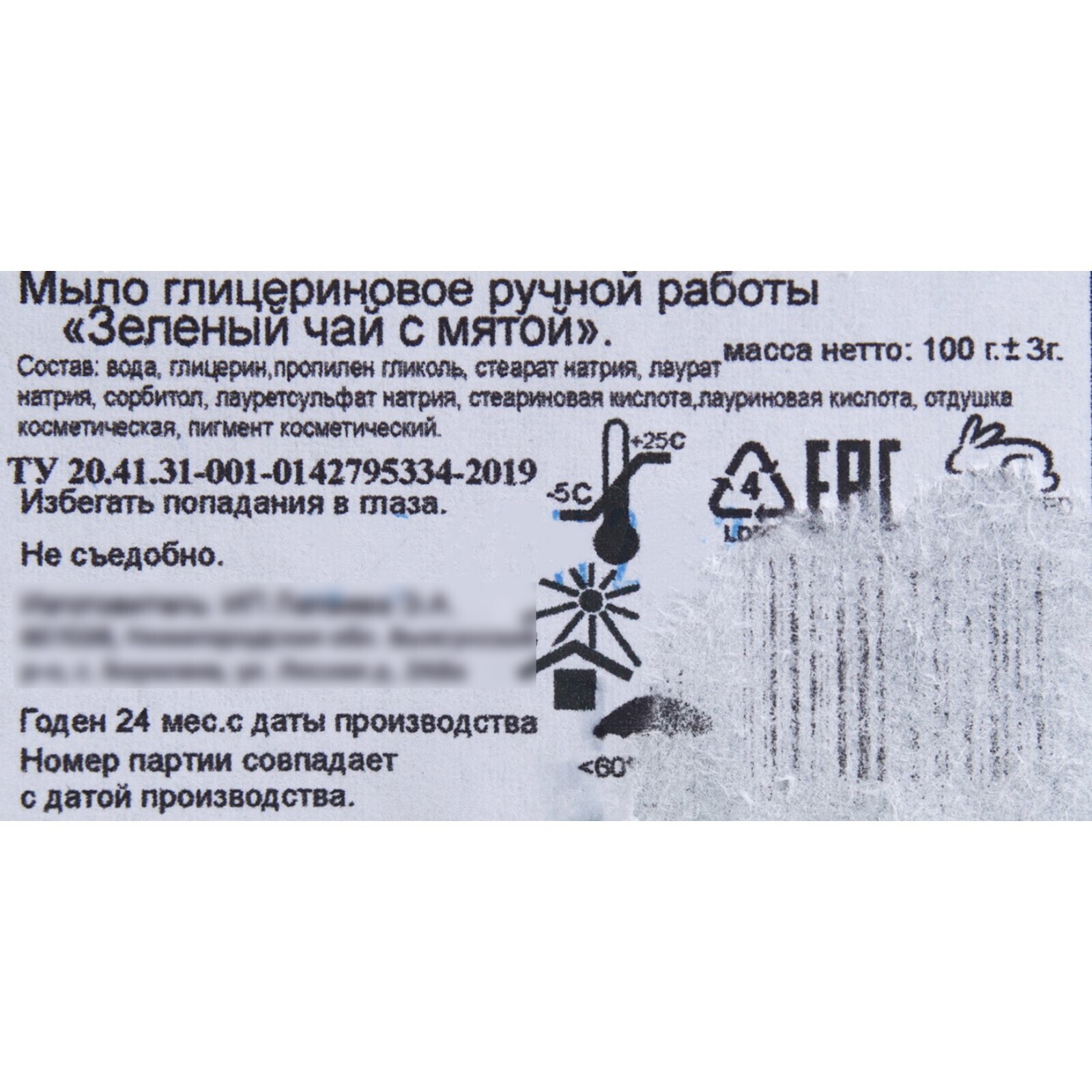 Мыло глицериновое ручной работы "Зелёный чай с мятой", 100 г