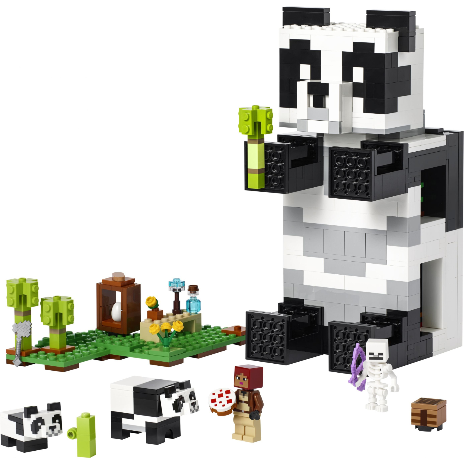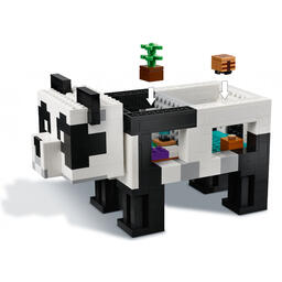 Якщо ви обожнюєте панд Minecraft, вам сподобається цей триповерховий будинок панди! Відкрийте задню частину, щоб роздивитися інші кімнати, кожна з яких має круті аксесуари для творчих ігор. Хочете змін? Перебудуйте будинок панди так, щоб він «сидів» або «стояв» на чотирьох лапах! Вирушайте в бамбукові джунглі з дослідником. Згодуйте панді й малюку-панді торт — але стережіться скелета з арбалетом!
