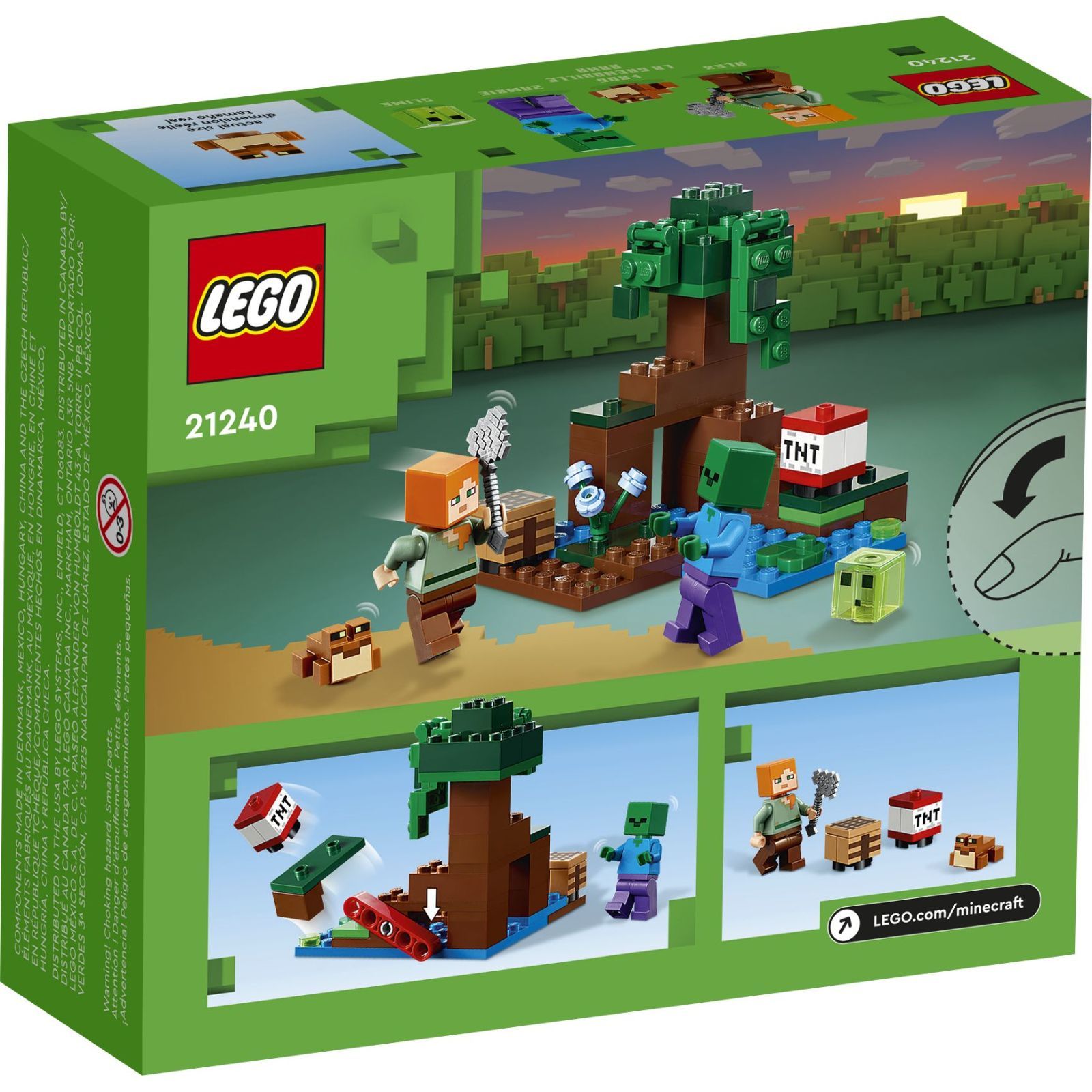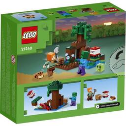 Подаруйте дітям творче захоплення Minecraft за допомогою цього фізичного варіанту небезпечної болотної місцевості. Героїнею цього універсального набору є знайомий всім персонаж з Minecraft, улюблениця Алекс, яка подорожує крізь болота й мангрові ліси. Крім можливостей для творчого будівництва, в наборі є дві ворожі моби для битви — зомбі й слиз — і дружня жаба, яка спостерігає за подіями зі своєю лілією. Діти допомагають Алексу застосувати свою сокиру й важіль, аби підірвати тротил і, таким чином, відбити будь-який напад. Якщо хочете додати цифрові розваги, у додатку LEGO Builder є функція інтуїтивного масштабування й обертання, яка дозволяє дітям, складаючи моделі, візуалізувати їх.