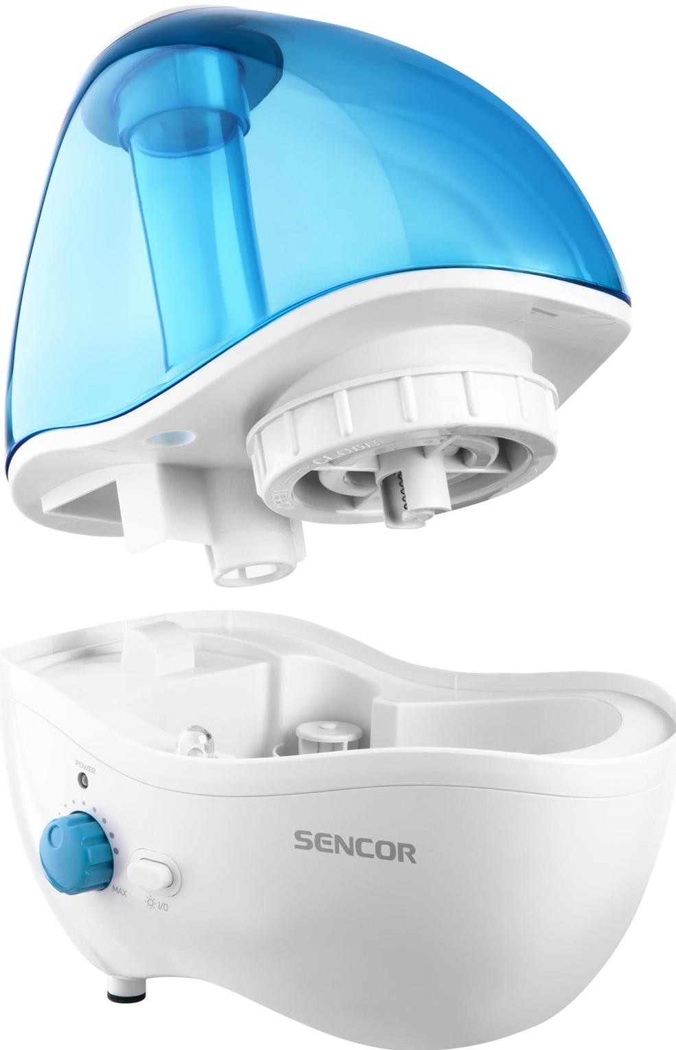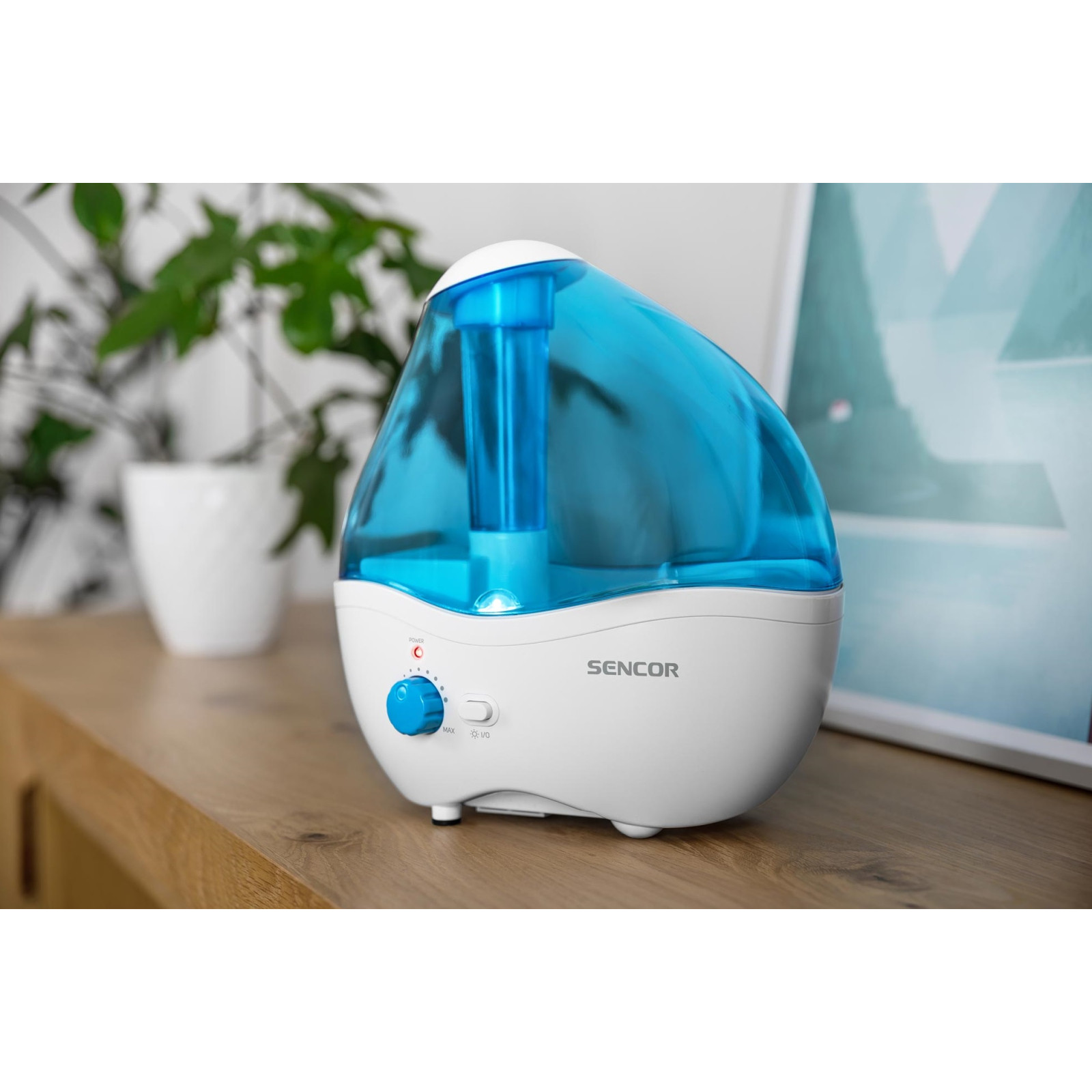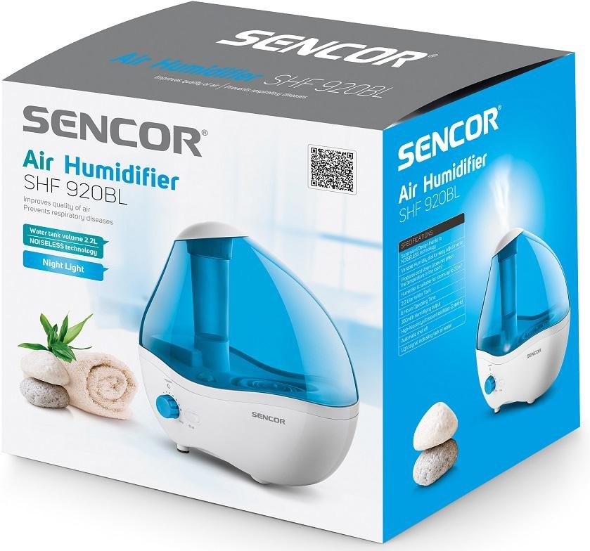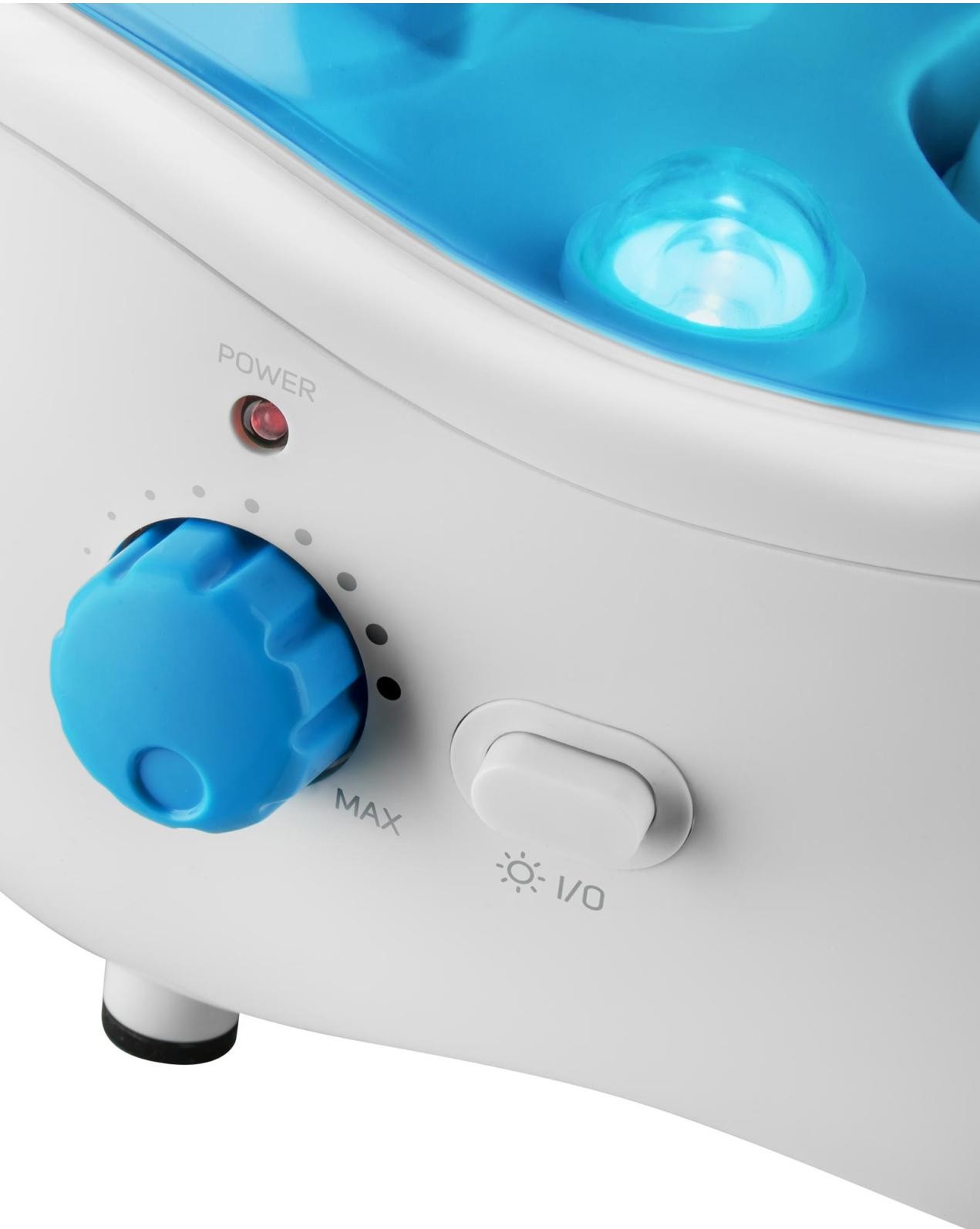 Ультразвуковий зволожувач повітря для приміщень до 20 кв.м., потужність 30 Вт, ємність резервуара для води 2.2 л, продуктивність 300 мл/год, внутрішнє підсвічування, світлодіодний індикатор наявності води, час роботи при одному наповненні та при максимальній потужності – до 6 годин , дуже тиха робота завдяки технології NOISELESS, автоматичне вимкнення, коли закінчується вода у баку.