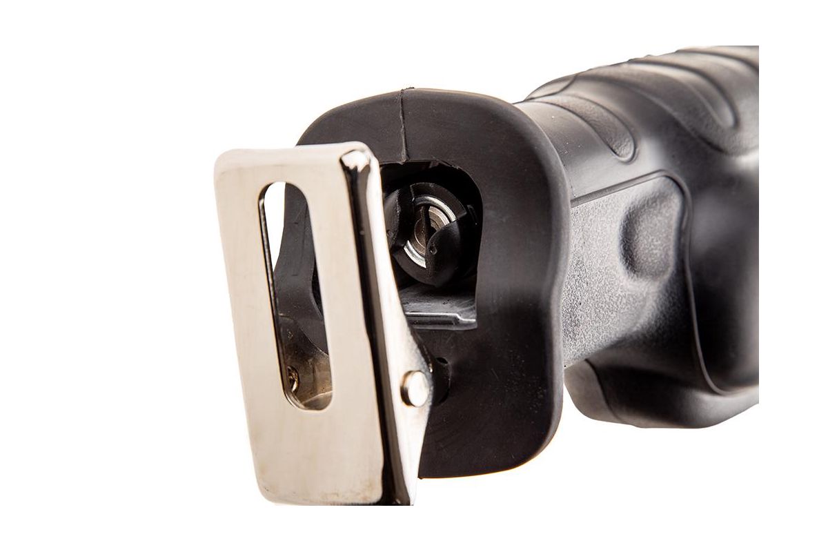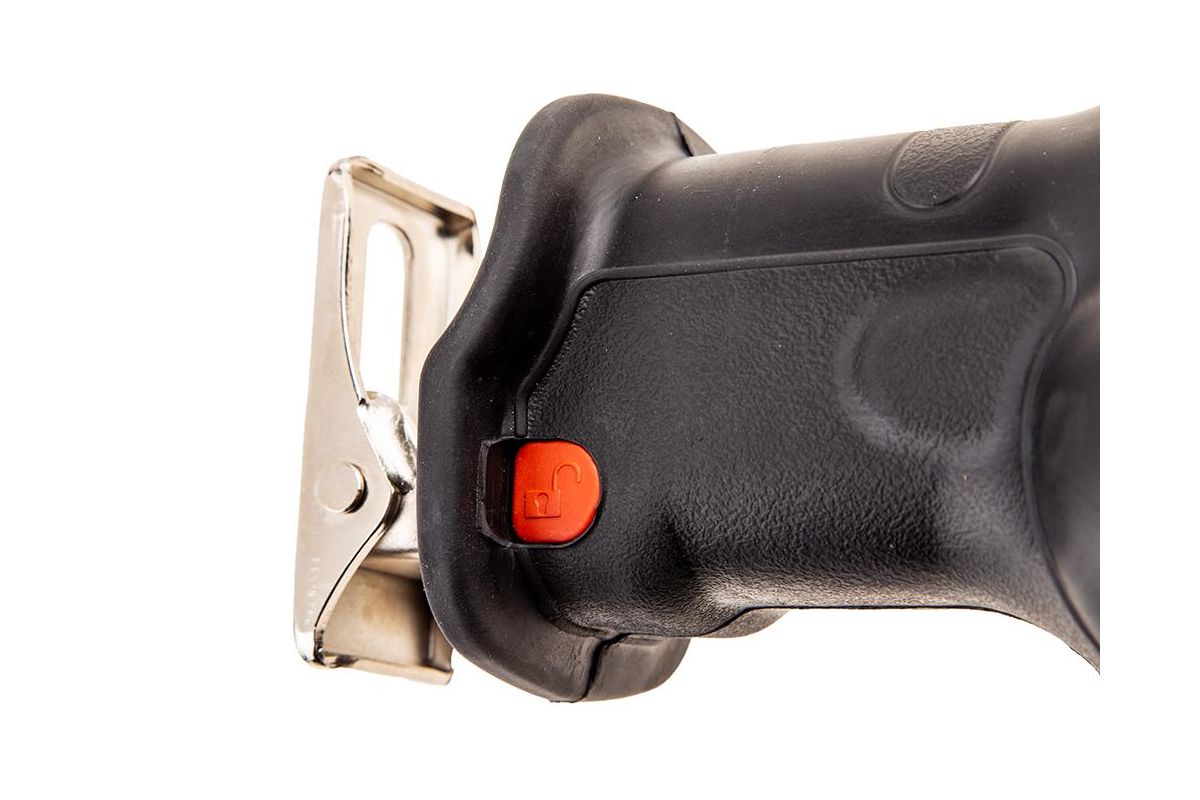 Ножовка оснащена опорной подошвой, закрепленной на стойке-держателе. Опора может фиксироваться в нескольких положениях при помощи кнопки-фиксатора. Изменяемые положения подошвы помогут полностью использовать ресурс пилки, используя новые участки зубьев взамен затупившихся. Замена полотна производится без съема опорной подошвы.