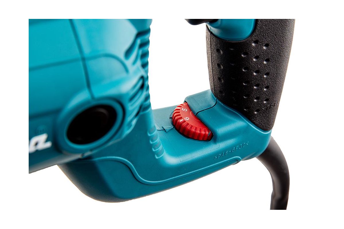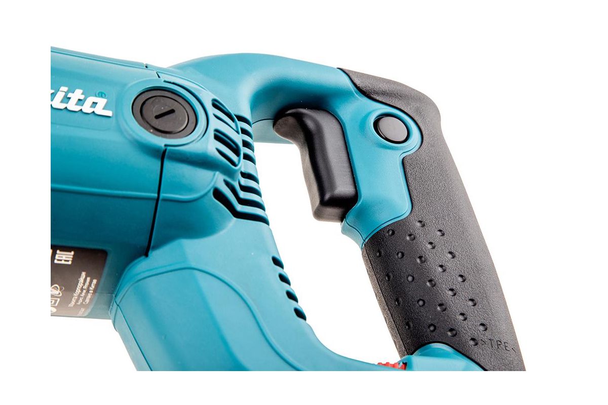 Японская сабельная пила MAKITA JR3070CT при достаточно мощном двигателе в 1500 Вт имеет систему плавного пуска, ограничивающую пусковой ток. Электронное регулирование числа оборотов позволяет распиливать материалы различные по твердости и плотности. Регулировать частоту хода полотна можно поворотом колесика, расположенного внизу на рукоятке пилы.