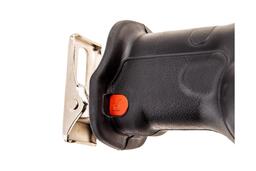 Маятниковое движение пилки переключается при помощи регулятора в углублении редуктора. Для непрерывной работы на редукторе ножовки расположена кнопка-фиксатор работы.