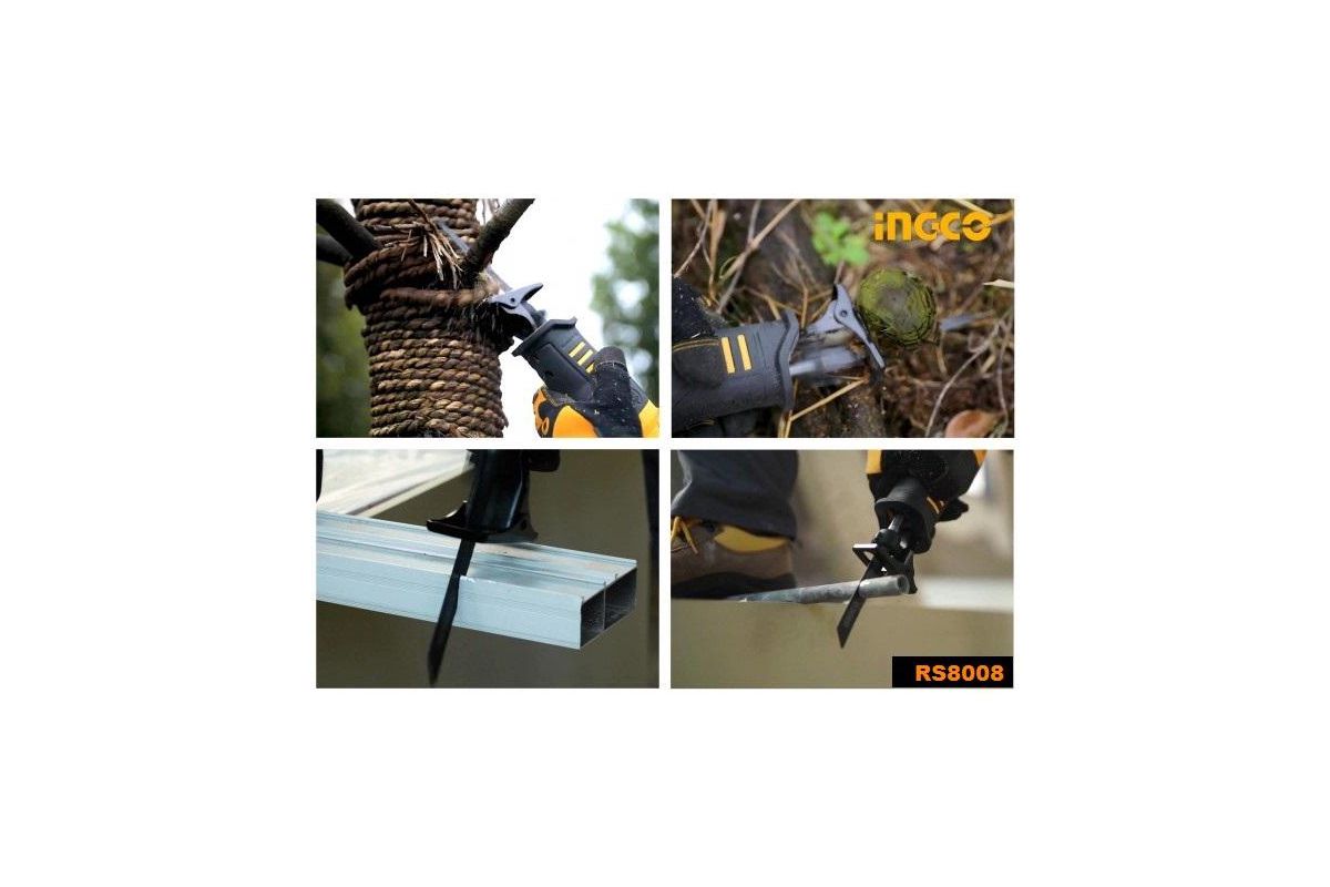 Сабельная пила INGCO RS8008 Сабельная пила Ingco RS8008 используется для реза дерева, металла, пластика, пенобетона, камня, а также для работ в саду.