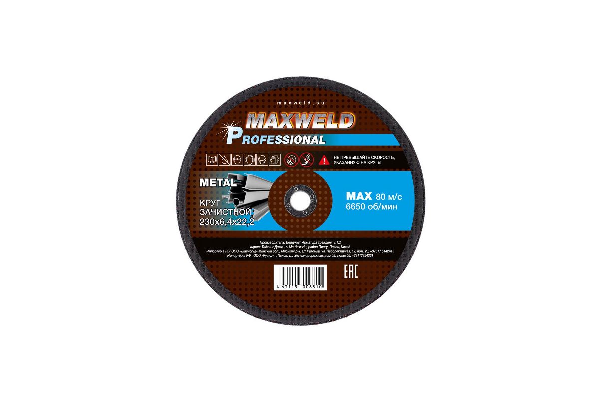 Круг зачистной MAXWELD, 42 230 6.4 22.2 A 24 R BF, мет+нерж., PROFESSIONAL