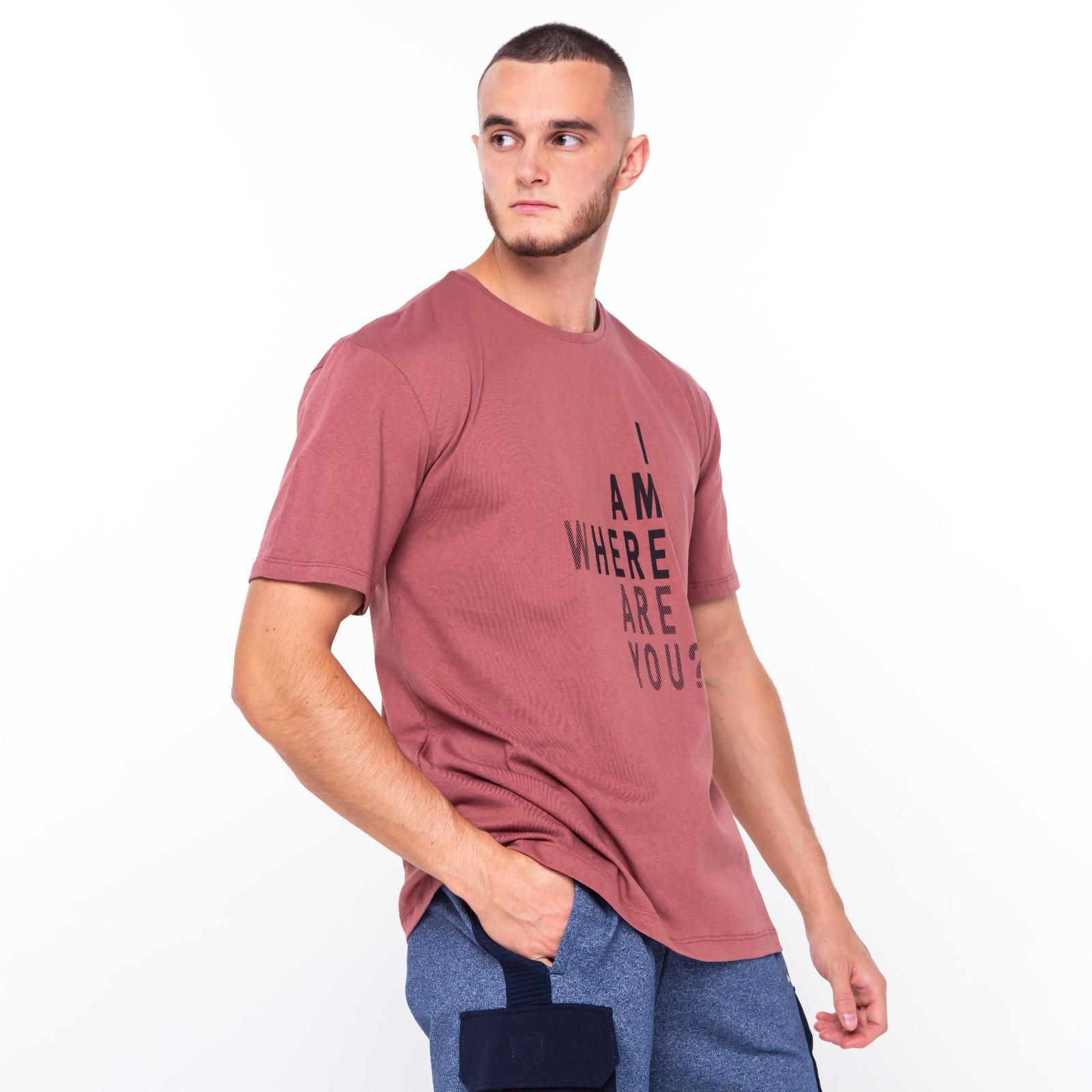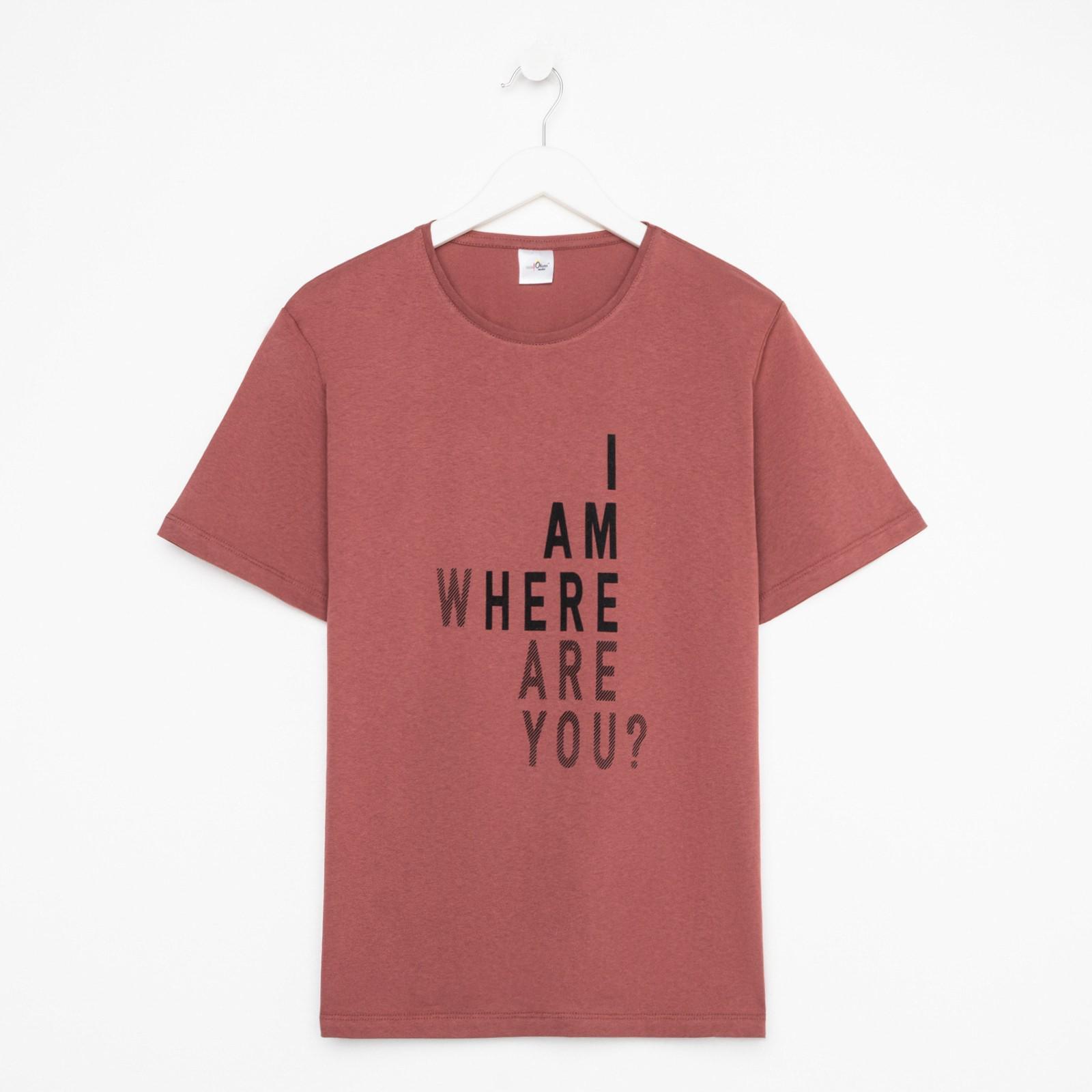 Футболка мужскаяс принтом, цвет кирпичный, размер 46