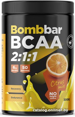 - Состав ВСАА (L-Лейцин, L-Изолейцин, L-Валин), регулятор кислотности (лимонная кислота), антиокислитель (аскорбиновая кислота), ароматизатор натуральный («цитрус»), подсластитель (сукралоза), краситель натуральный (свекла порошок).